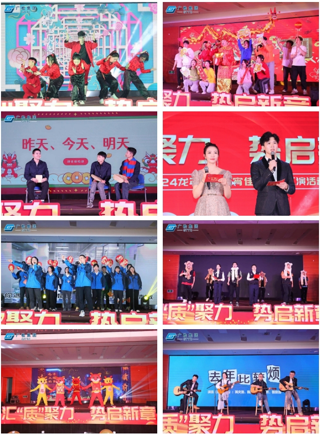会后举办了“汇‘质’聚力,势启新章!—广质庆祝2024龙年新春元宵佳节文艺汇演活动”。文艺汇演由各部门精心编排的节目组成,节目之间还开展了紧张激烈的抽奖环节。汇演节目形式多样,丰富多彩,通过歌曲、舞蹈、小品、诗朗诵等丰富的艺术形式,展现了“广质人”朝气蓬勃、昂扬向上的精神风貌和敬业爱岗的从业精神,表达了全体职工喜迎龙年、庆祝元宵佳节,共同携手奋进美好新时代的祝愿。