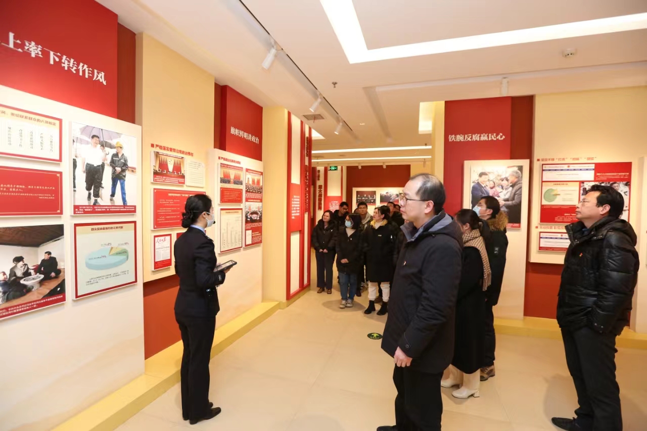在讲解员的带领下,一起参观了从“赶考之路”到“廉政之规”,从“覆车之鉴”到“湖北之为”在内的四个展厅,观看了《不忘初心 牢记使命》《“赶考”远未结束》《榜样》《监狱的一天》等教育短片,通过图文展示、专题片、互动答题等形式,教育引导广大党员干部牢记清正廉洁的底线、红线、生命线。