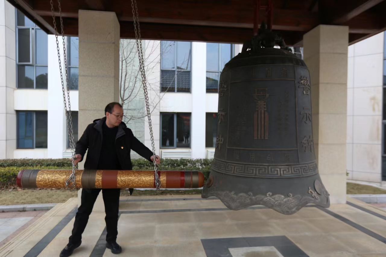 随后,各位同志来到廉政文化广场,面向警示钟肃立,武汉公司党支部书记马良同志庄重地敲响三声警示钟,厚重而悠远的钟声在大家心头久久萦绕。