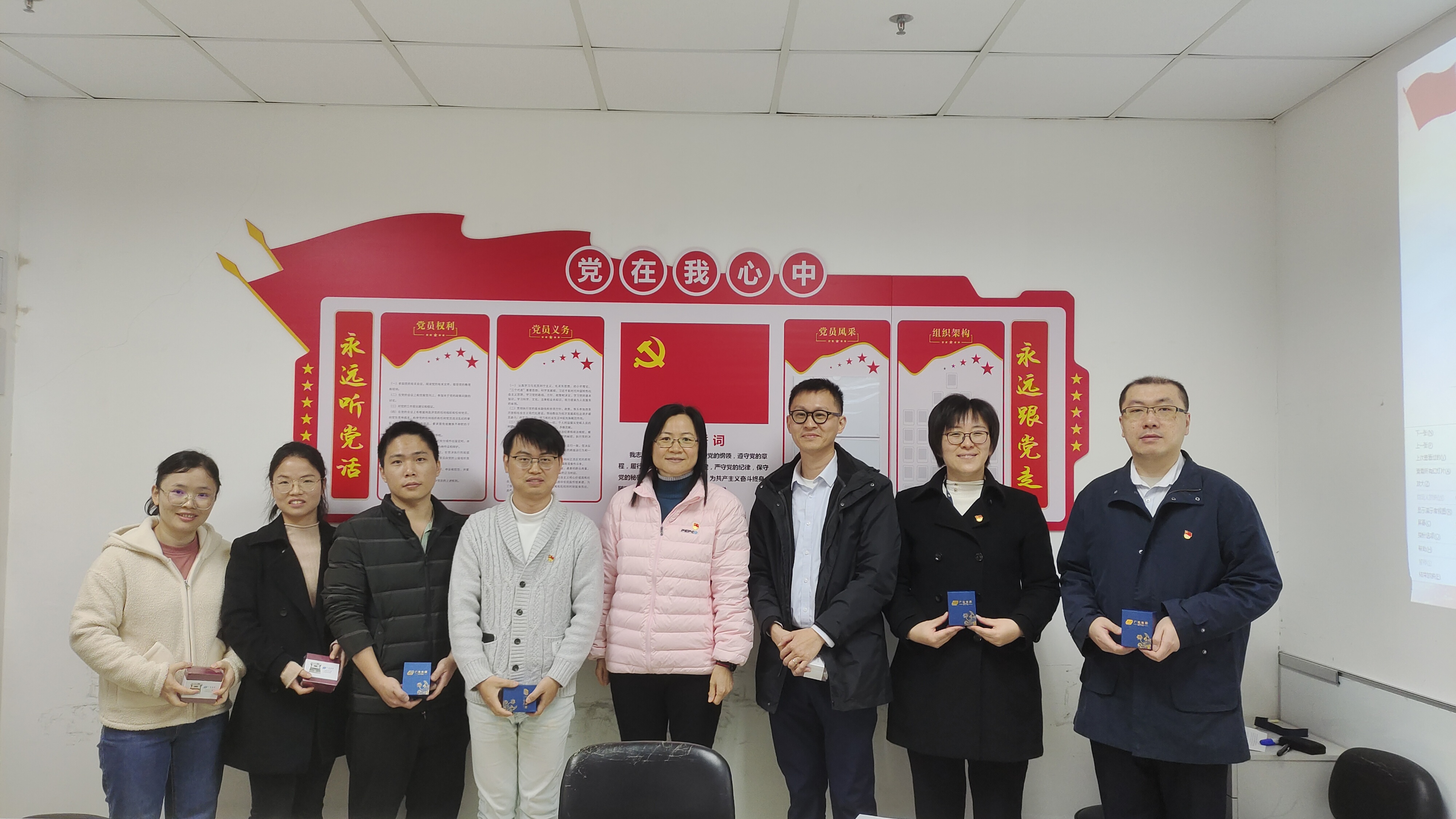 随后,对在2023年支部党建工作有突出贡献的党员进行表彰。根据各位党员参与支部党建活动情况,分别评选出支部党建工作“优秀组织者”和“优秀宣传员”并为他们进行了颁奖。