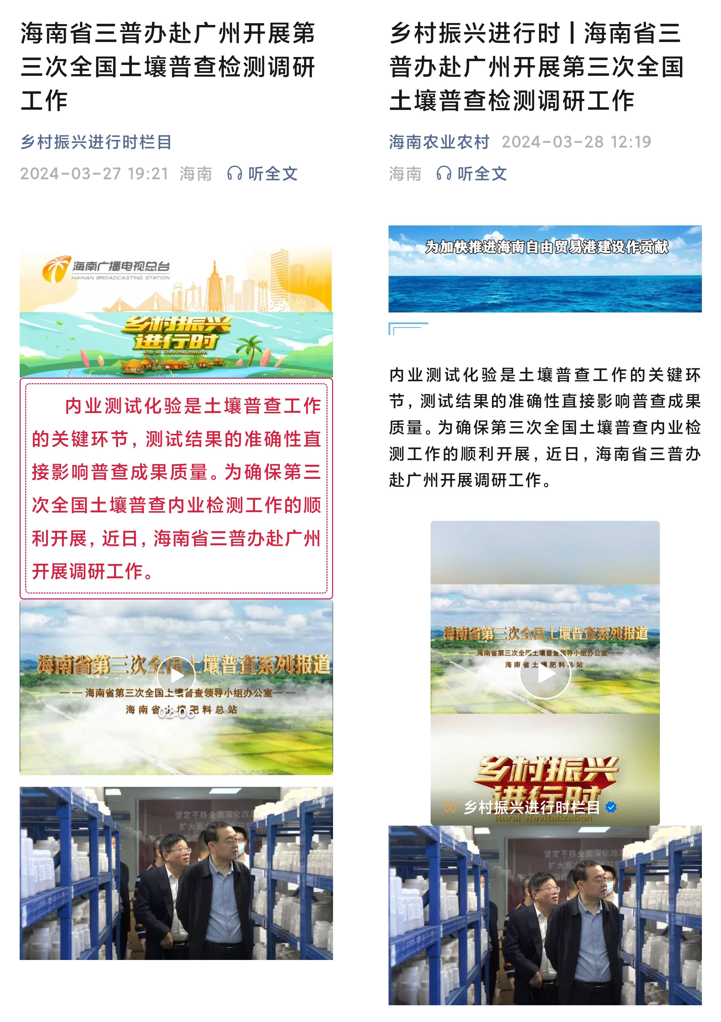 调研情况在海南广播电视总台、海南农业农村等相关栏目进行了报道