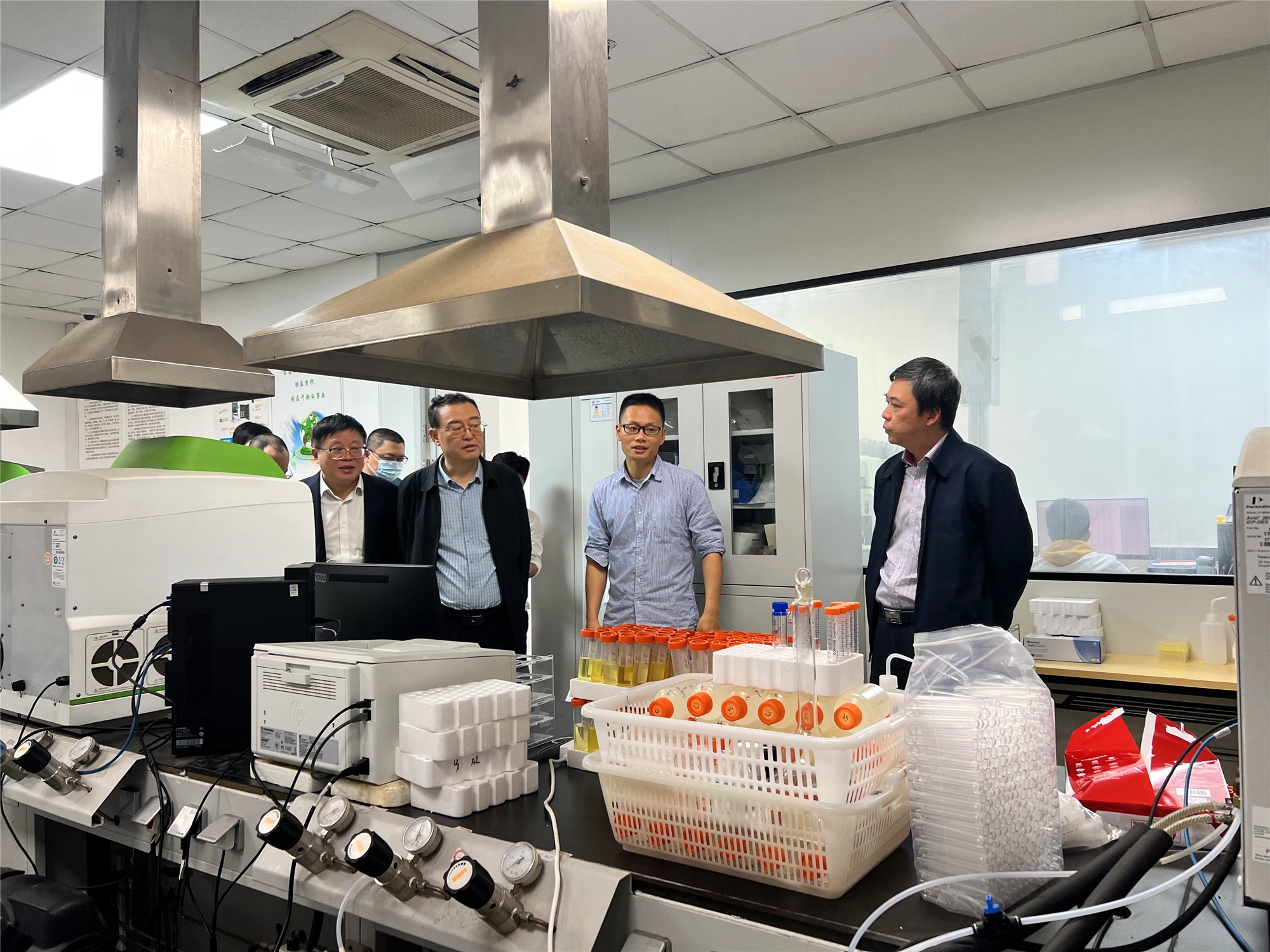 马育红副厅长一行首先参观了广检集团三个国家级检测中心,重点查看了广检集团承担的海南省第三次全国土壤普查项目的样品储存、制备和检测等关键环节,广检集团广科院有关领导详细介绍了三普项目整体工作计划、实验室检测能力和科研水平等情况。