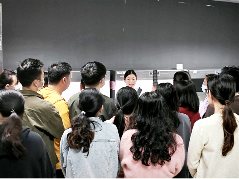 活动中,广纺第二党支部所属的受理、出证岗位的党员同事们来到了广纺第四党支部所在的光学检测中心,实地学习了解该中心检测项目情况。在现场,广纺第四党支部张顺连同志介绍了耐光测试仪器设备和色卡蕴含的“奥秘”;林惠莲同志详细分享了耐光色牢度测试原理、国内外标准之间的差异、一阶段/二阶段判断、深浅色分辨、测试时间等受理和出证岗位的关注要点。
