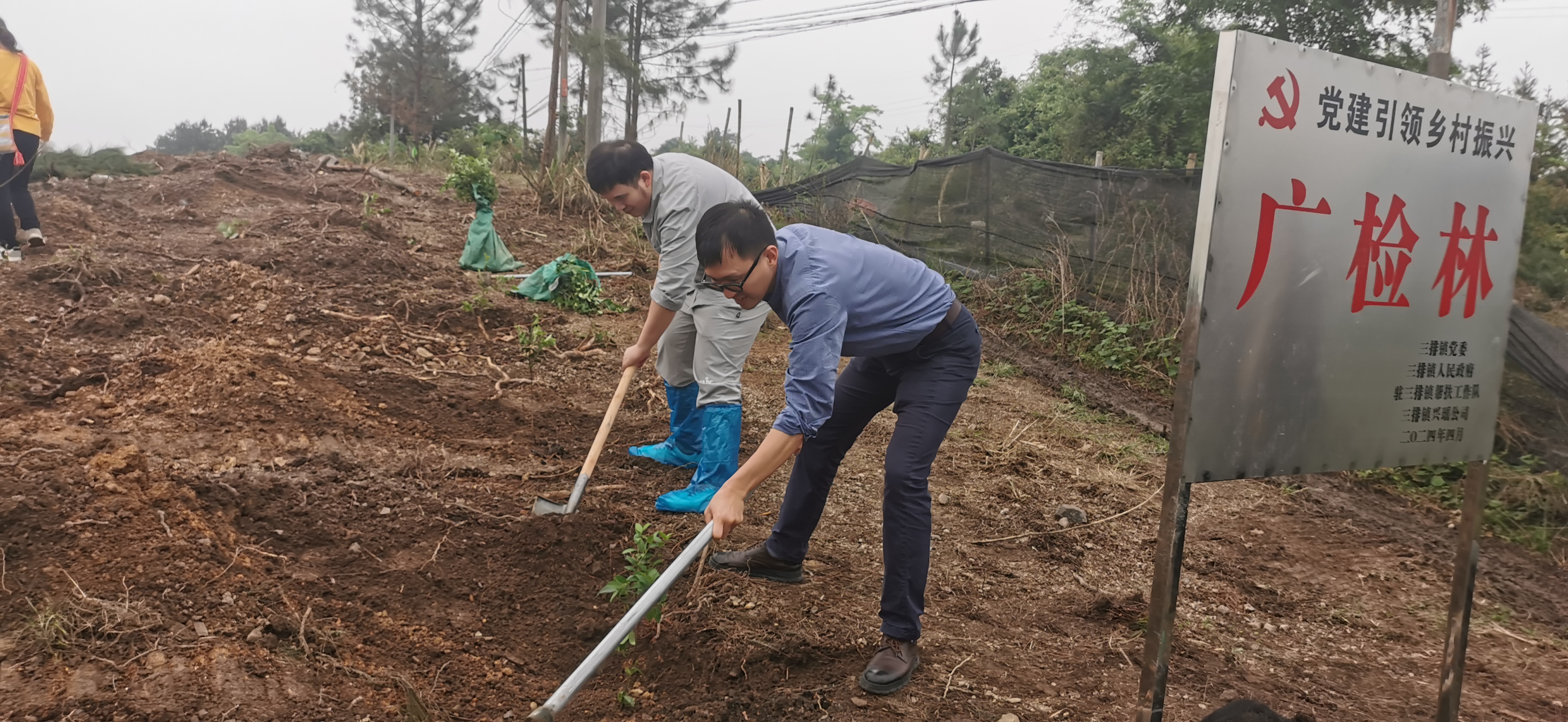 随后,双方党员代表共同参与“绿美广东”主题植树活动,用实际行动守护绿色、增添绿色,共育“广检林”。活动期间,还参观了三排镇乡村振兴车间和三排古寨高端民宿项目,实地感受到了乡村振兴带来的新变化和新气象。