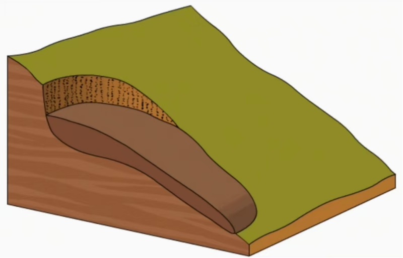 第二种是铲式滑动,这种失稳滑动面为圆弧形;