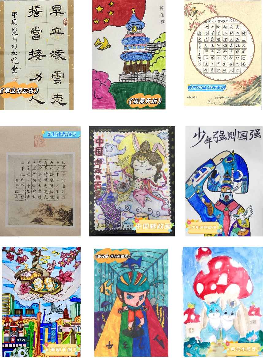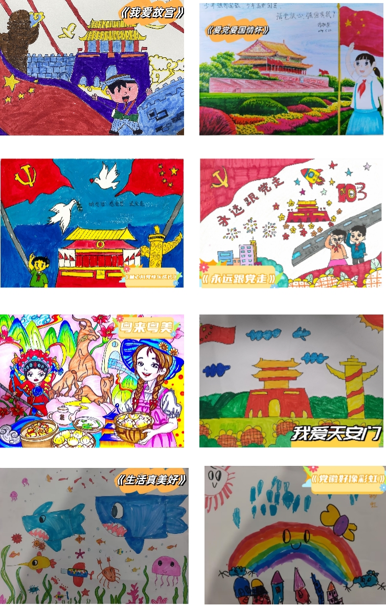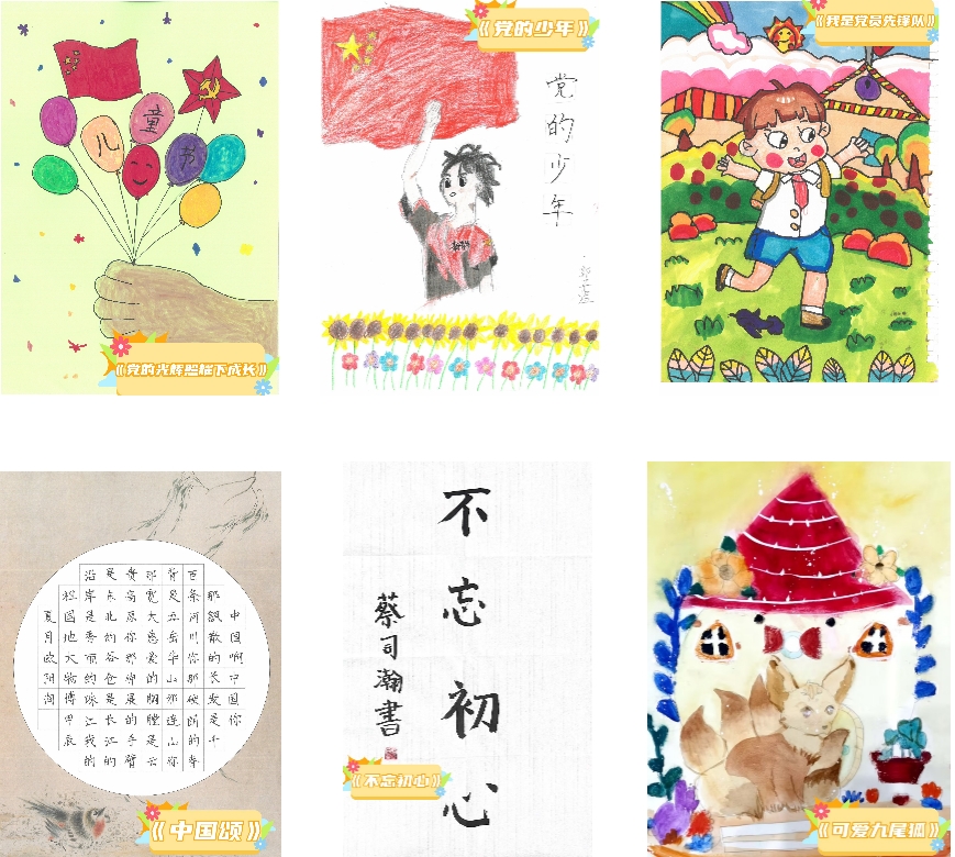 丹青书盛世,翰墨颂党恩。孩子们以书言志,以画寄情,一笔一划都表达了对党和国家的热爱、对美好生活的憧憬,也展现了孩子们积极向上的精神面貌。