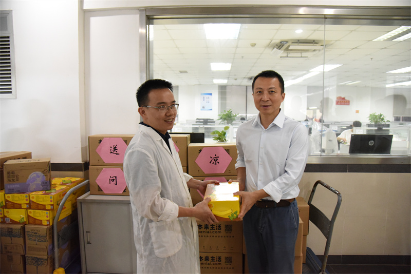 为表达对一线员工的深切关怀,7月29日,集团工会广纺分会组织 “夏日送清凉”慰问活动,广检集团党委副书记、董事苏广豪,广纺党委书记、广纺院院长冯文,广纺党委委员、纪委书记汪朝红,以及广纺党委委员、广纺分会主席谢枢等领导带着满载的清凉物资,深入一线岗位,为在高温与有害环境中坚持作业的检验员们送去关怀与清凉。