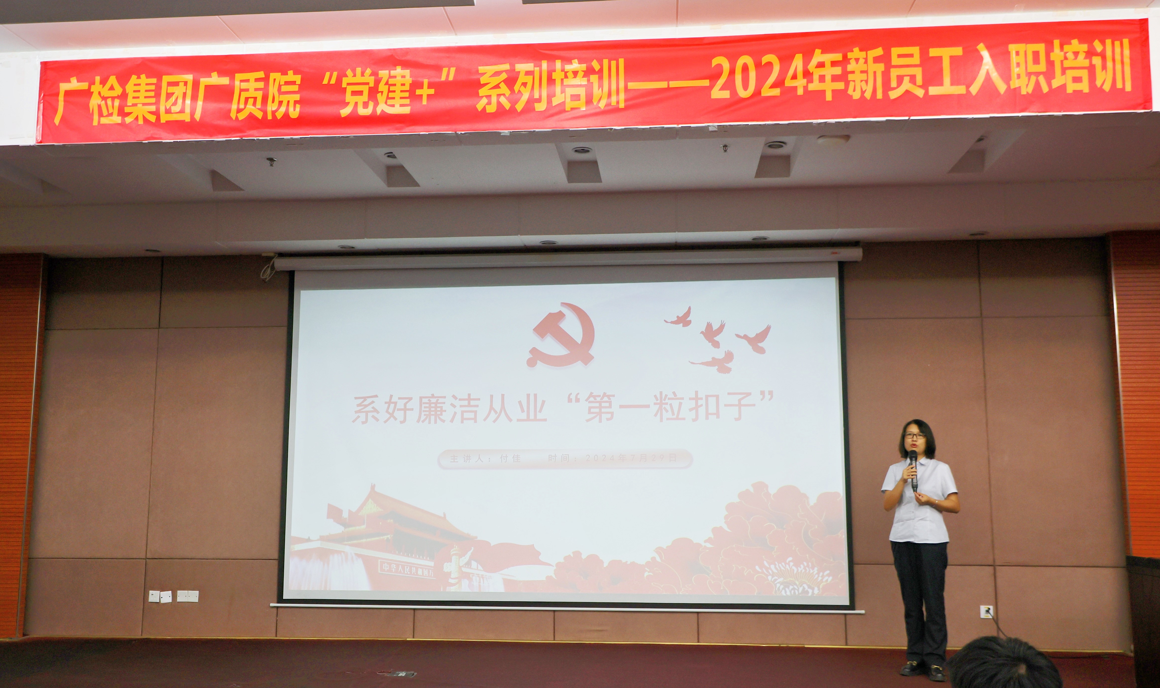 为夯实新员工廉洁从业的根基,广质党总支委员、广质院副院长/广质公司副总经理付佳亲自授课,通过生动的案例剖析与互动讨论,阐述廉洁从业的重要性和具体要求,引导新员工树立正确的价值观与职业道德观,让新员工深刻感受到“廉洁就在身边,作风从我抓起”的必要性和紧迫感,时刻铭记初心,坚守廉洁底线,系好廉洁从业的“第一粒扣子”,走稳职场生涯的“第一步路”,以清正廉洁的作风投身检验检测事业。