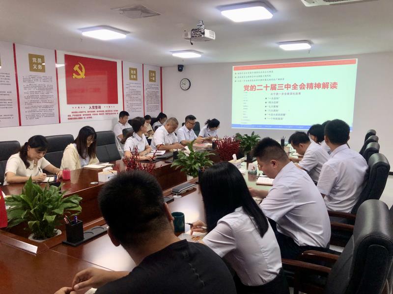 随后,党支部书记吴映华同志以《党的二十届三中全会精神解读》为题讲授专题党课,结合工作实际,围绕进一步全面深化改革的“一大目标”“两大任务”“七大聚焦”“六大原则”“十四大系统部署”“一个特别强调”等内容,用通俗易懂的语言,生动形象地阐述了全会的重大意义、核心内容和目标任务,使与会党员干部深受启发和教育。
