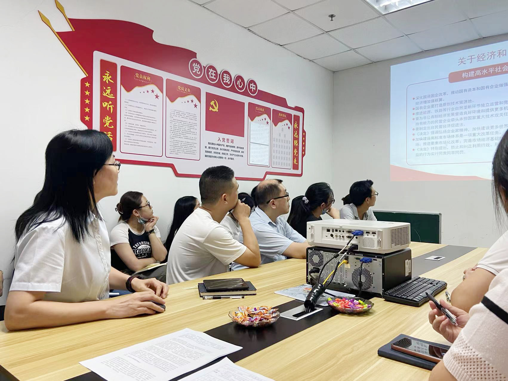 随后,根据上级工作安排,王向钦同志以“锚定现代化,改革再深化,继往开来奋进新征程”为题,为全体党员干部作党的二十届三中全会精神宣讲。王向钦同志强调,全体党员要深刻理解全会精神实质,准确把握全会提出的“六个原则”和“七个聚焦”,在集团党委和广纺党委的正确领导下,坚持守正创新,紧跟时代步伐,顺应实践发展,突出问题导向,以“三化”改造为契机,培育和发展新质生产力,加快推进新兴检测能力建设。全体党员认真研学,深入思考,纷纷围绕职责使命谈感想、话担当,表示将以全会精神为指引,立足本职,以更加昂扬的斗志、更加奋发有为的精神状态干好各项工作,共同助力集团高质量发展。