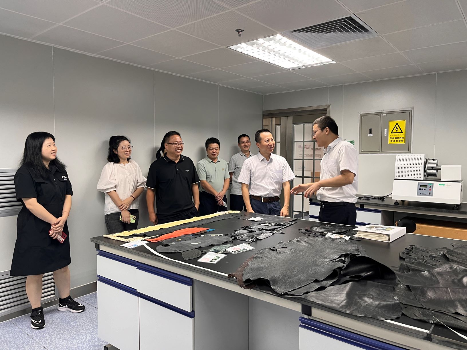 调研组先后参观了国家皮革质检中心1号、2号实验楼,详细了解了皮革制品、箱包、文具玩具等制品检测的项目及业务开展情况。之后调研组进行了座谈交流,集团党委办/组织人事部就帮扶花都区狮岭镇的政策文件、前期与狮岭镇政府的沟通情况进行了介绍,参会人员围绕狮岭镇政府提出的7个帮扶项目实施计划、可行性、进展及难度进行了交流讨论。苏广豪同志认真听取了各方意见,并就下一步工作提出了以下要求:一是各部门要深刻领会促进区域协调发展、实施“百千万工程”的重大意义,提高政治站位,形成帮扶共识。二是集团党委办/组织人事部要统筹协调好帮扶工作,其他部门全力配合,针对狮岭镇的帮扶项目要高质量完成,确保帮扶工作精准有效。三是加强集团与狮岭镇的联动合作,强化对狮岭镇产业转型升级的引导和支持,帮助企业解决发展中遇到的困难和问题,为狮岭镇开辟出一条可持续纵向帮扶的发展道路。