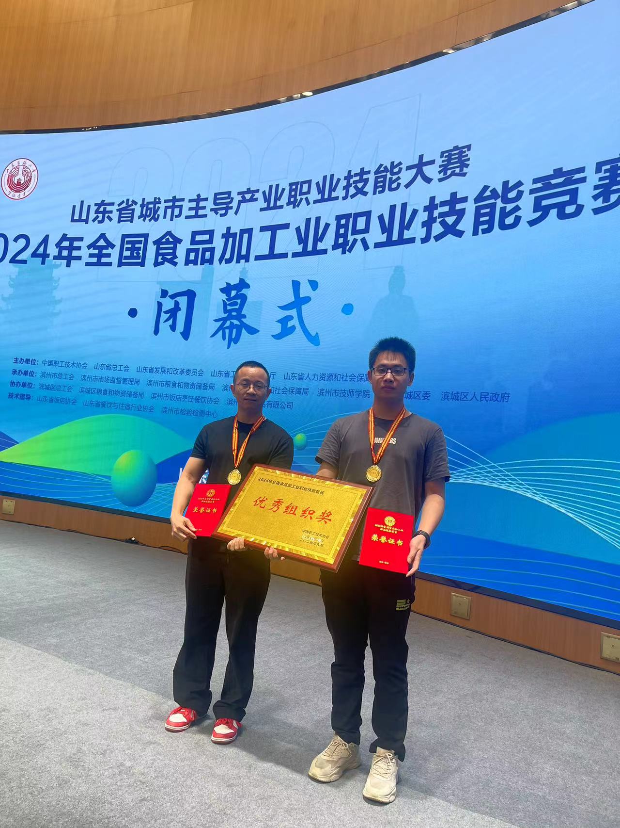9月22-23日,2024年全国食品加工业职业技能竞赛在山东省滨州市圆满落下帷幕。广检集团在此次竞赛中斩获佳绩!来自广检集团广质院理化检验部彭强、李锦彪2位选手,凭借出色的技艺和卓越的表现,在食品中总酸的测定竞赛项目中分别荣获个人二等奖、优秀奖,广检集团荣获优秀组织奖!
