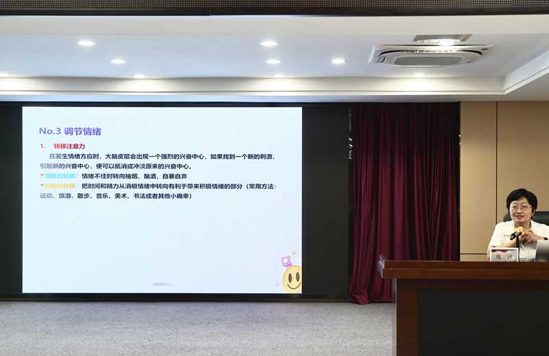 在讲座中,陈洁博士围绕“做情绪的主人”这一主题,通过深入浅出的讲解和生动的案例分析,阐述了压力产生的原因、影响以及有效的管理策略,并传授了实用的情绪调解技巧,鼓励大家在日常生活中积极实践,逐步提升自己的情绪管理能力。她指出,现代社会中,压力无处不在,每个人都可能面临来自工作、家庭、社会等多方面的压力;适度的压力可以激发人的潜能,但过度的压力则可能导致身心健康问题。她强调,学会管理压力,成为情绪的主人,对于提高生活质量和工作效率至关重要。