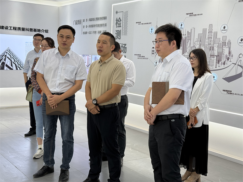 常乐一行参观了广检工程检测中心的建设工程质量科普基地、智能化实验室、智能抗渗检测室、园林检测室等,了解了AGV智能运输系统、混凝土芯样抗压智能检测系统等智能化设备。