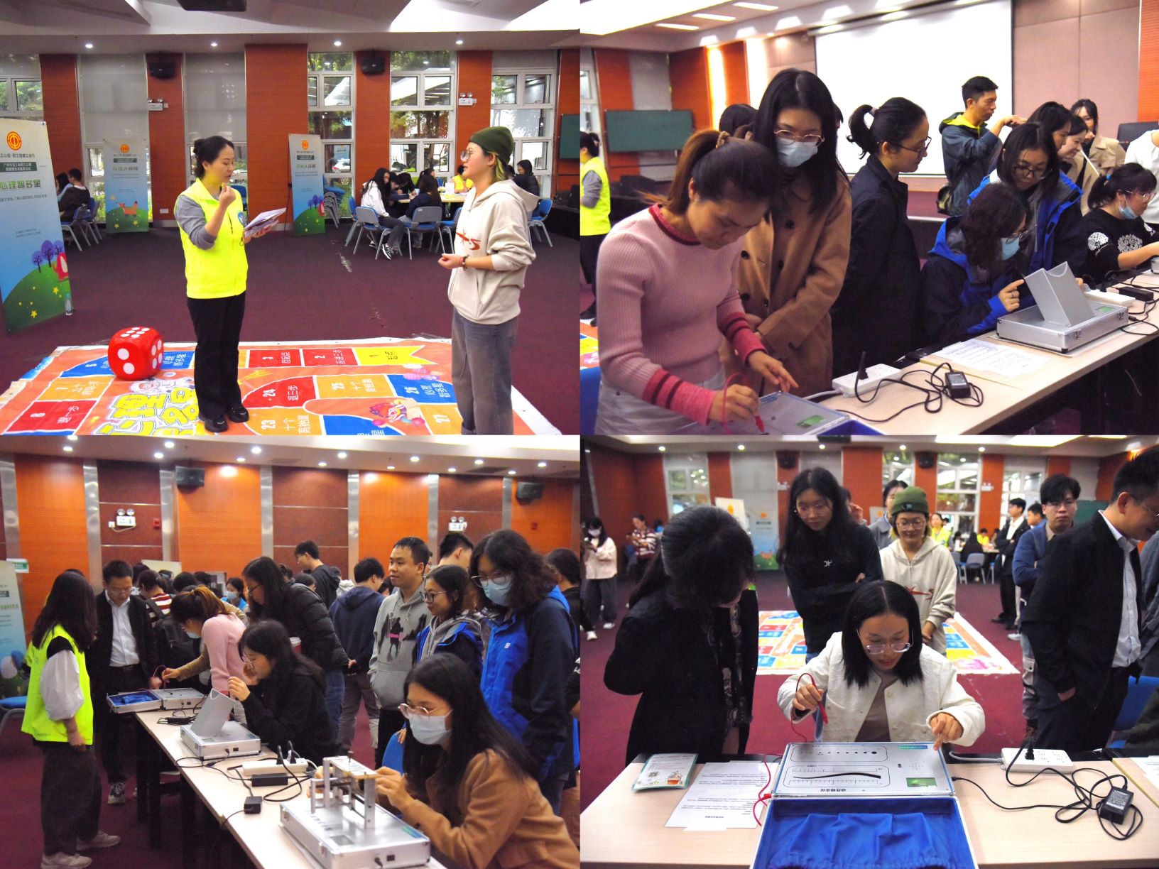 活动当天,14个摊位巧妙融合游戏与科学仪器,为职工们带来了一场场精彩纷呈的现场体验。这些精心设计的专业心理互动游戏,不仅让参与者在欢声笑语中享受了一场愉悦的“心灵之旅”,更在游戏中探索自我,对心理健康有了更深的认识。