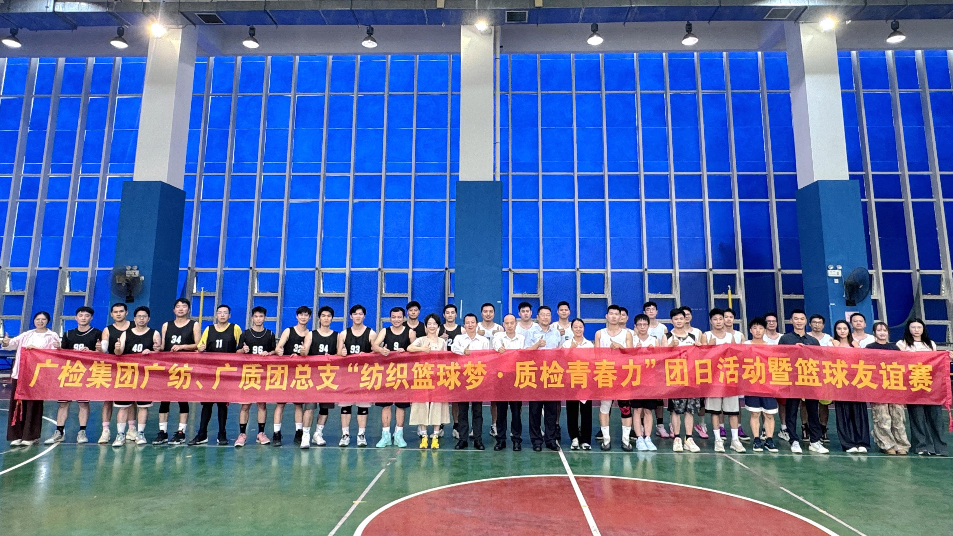 为增进广检集团团组织和青年职工之间的交流与友谊,弘扬团队合作精神,丰富企业文化生活,2024年11月13日,广检集团广纺团总支与广质团总支开展了“纺织篮球梦·质检青春力”团日活动暨篮球友谊赛活动。广检集团党委副书记、董事苏广豪,集团团委书记、办公室(董监办公室、人民武装部)副主任余俊毅,广纺党委书记、广纺院院长冯文,广质党总支书记、广质院院长姚晓庆出席了本次活动。