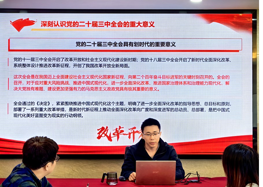 刘海华首先深入浅出地阐述了党的二十届三中全会的重大意义。他指出,此次全会在我国全面建设社会主义现代化国家新征程的关键时期召开,对全面深化改革的持续推进、中国式现代化进程的加速以及民族复兴伟业的实现具有深远影响,是一次具有里程碑意义的重要会议,起到了承前启后、继往开来的关键作用。
