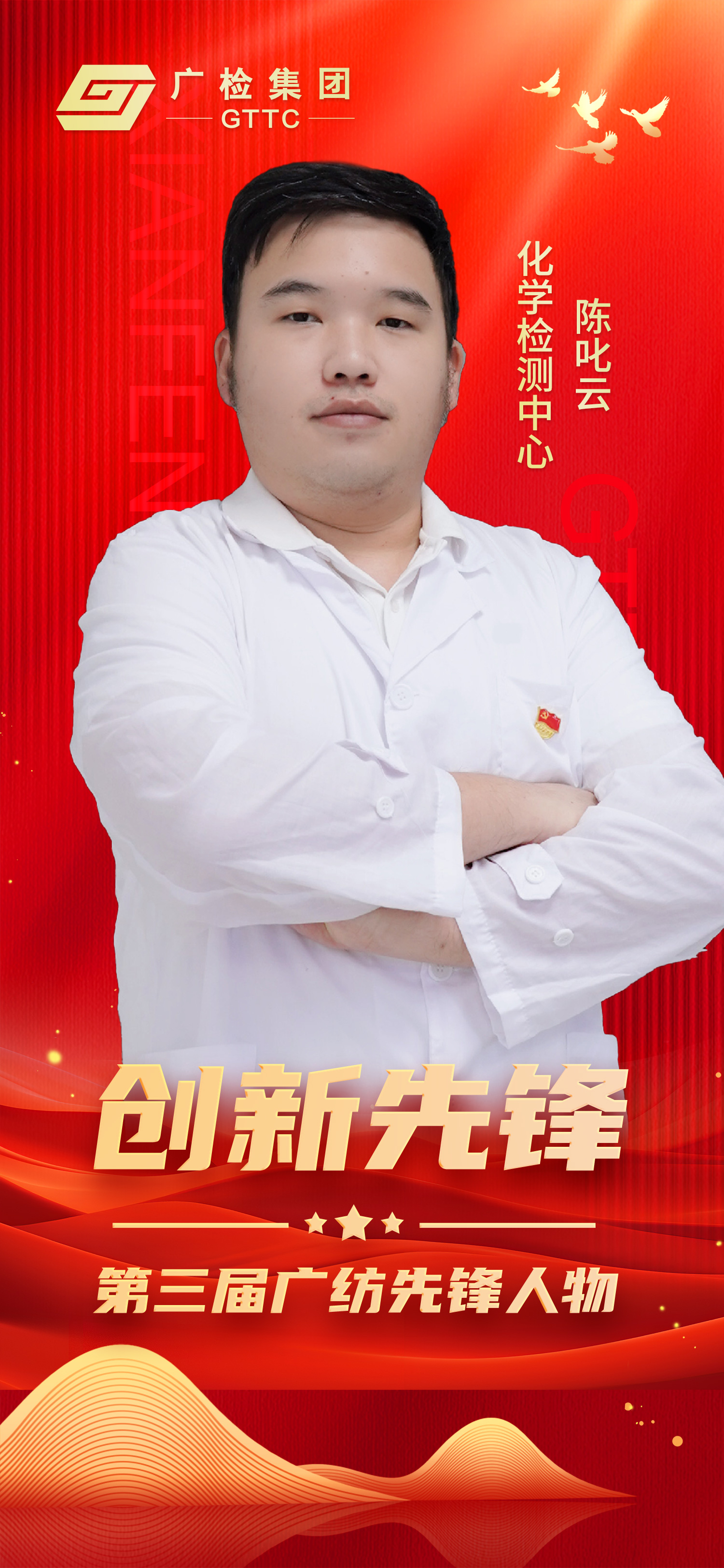 陈叱云,中共党员:“0”的突破,“1”的积累。他专注于检验检测技术创新需求,完成了水质试剂盒产品的实验室验证和生产流程从“0”到“1”的技术积累。他勇于探索、勤于实践,针对水质试剂盒产品当前的发展现状、痛点难点和趋势,他敢破敢立,敢闯敢试,立足自身创新技术能力的深厚基础和长期沉淀,在实验室内埋头真干、撸袖实干,扎实攻克水质试剂盒研发过程中遇到的每一项科学难题,用一流的标准、科学的方法对水质试剂盒进行实验研究,成功解决了四项具有代表性的关键问题,并围绕试产过程进行了试剂盒商品化流程的完整探索,致力于实现科研成果转化。由他领衔自主开发的水质检测试剂盒,有效提升了准确性和灵敏度,推动水质检测更灵敏、更稳定和更便捷,并使得水质检测成本进一步降低,以创新探索新领域实际成效推动广纺院高质量发展。