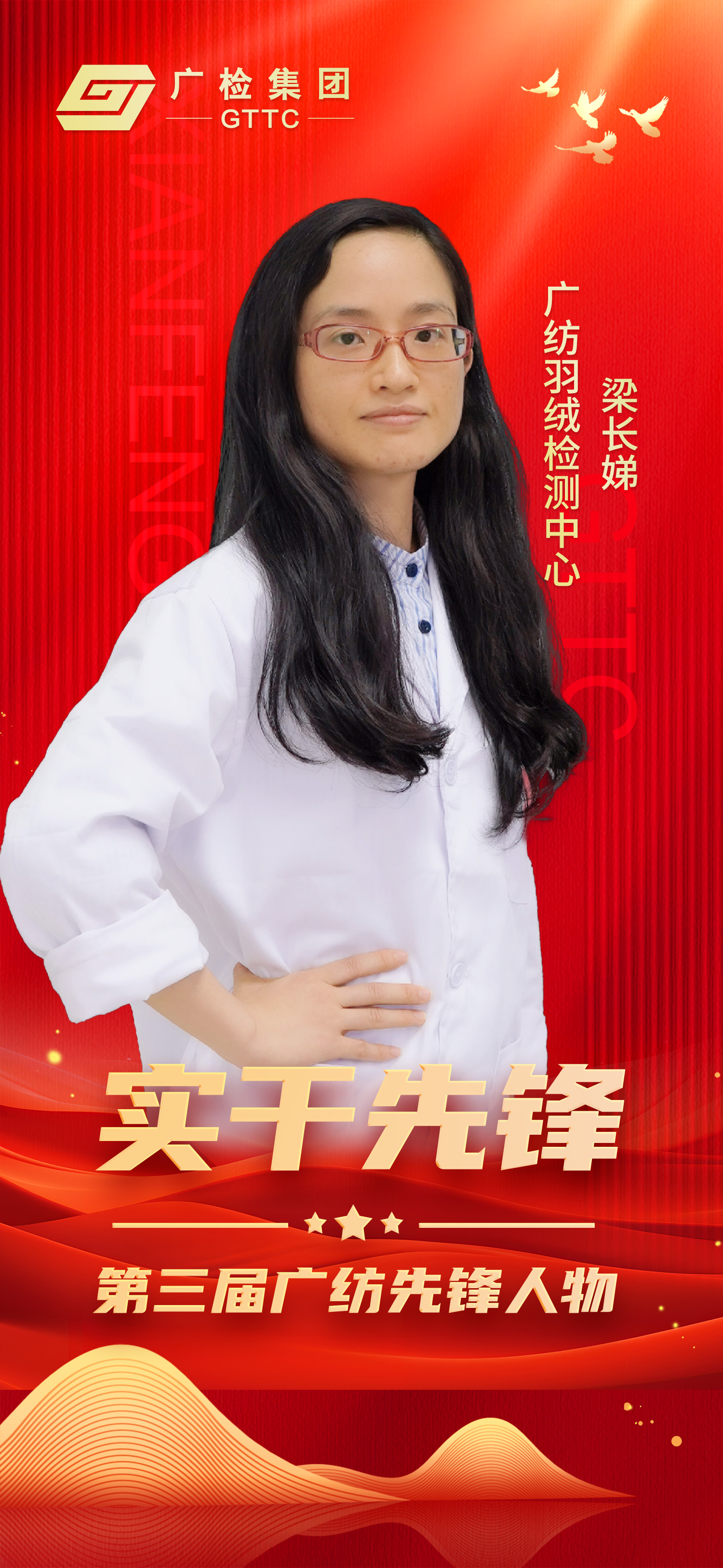 梁长娣:深耕检测勤勉争先,守正创新笃行致远。她忠诚履职、甘于奉献,在羽绒检测业务量陡增的关键时刻下,她以身作则发挥出“传帮带”的作用,毫无保留将自己的经验和知识传授给新同事,充分调动了部门员工工作积极性,为羽绒中心技术人才培养作出了积极贡献。她带动引领,勤于担当,她作为主讲人为省内、省外羽绒产业集聚地讲授了两届羽绒检测精品课程,帮助企业客户及时掌握标准的要求及规范检测手法,助力提升企业羽绒实验室的检测技术水平,获得了在场企业的好评。她潜心钻研,敢于创新,作为羽绒技术团队的核心成员,她主动承担和参与了广纺院和部门科研项目开展,助力实用型专利申请,为推动羽绒检测从手工向自动化发展贡献应有的力量,被评为“优秀员工”“技术服务之星”。