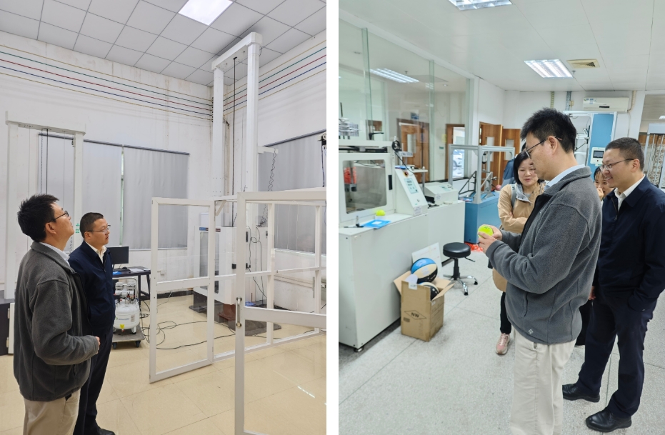 调研组先后参观了花都园区食堂、1号实验楼、2号实验楼,深入了解了皮革制品、箱包鞋、文具玩具、体育用品、头盔等产品及奢侈品鉴定的检测工作全过程,并听取了花都园区实验室负责人杨锋波的工作汇报,详细了解了花都园区的发展历程、能力建设及业务开展等情况。