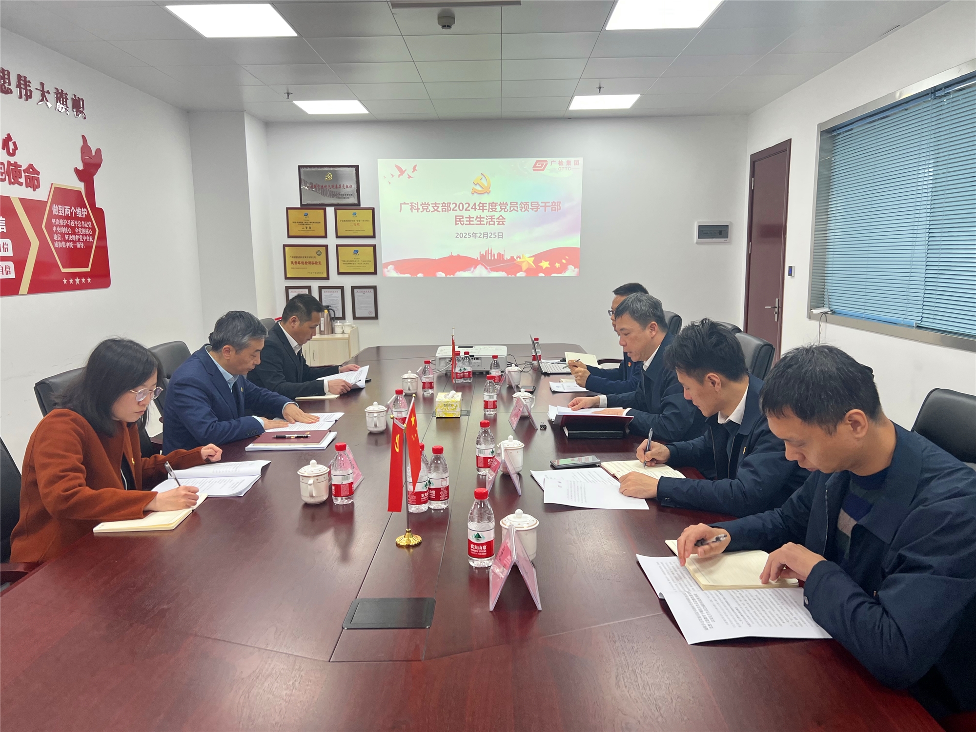 按照广检集团党委统一部署要求,2月25日下午,广科党支部领导班子召开2024年度党员领导干部民主生活会。集团党委委员、副总经理潘伟,党委办公室(党群工作部)、组织人事部副总监谢毅以及纪检监察室有关负责同志到会指导。广科党支部书记、院长/执行董事、总经理万泉主持会议,其他班子成员参加会议。
