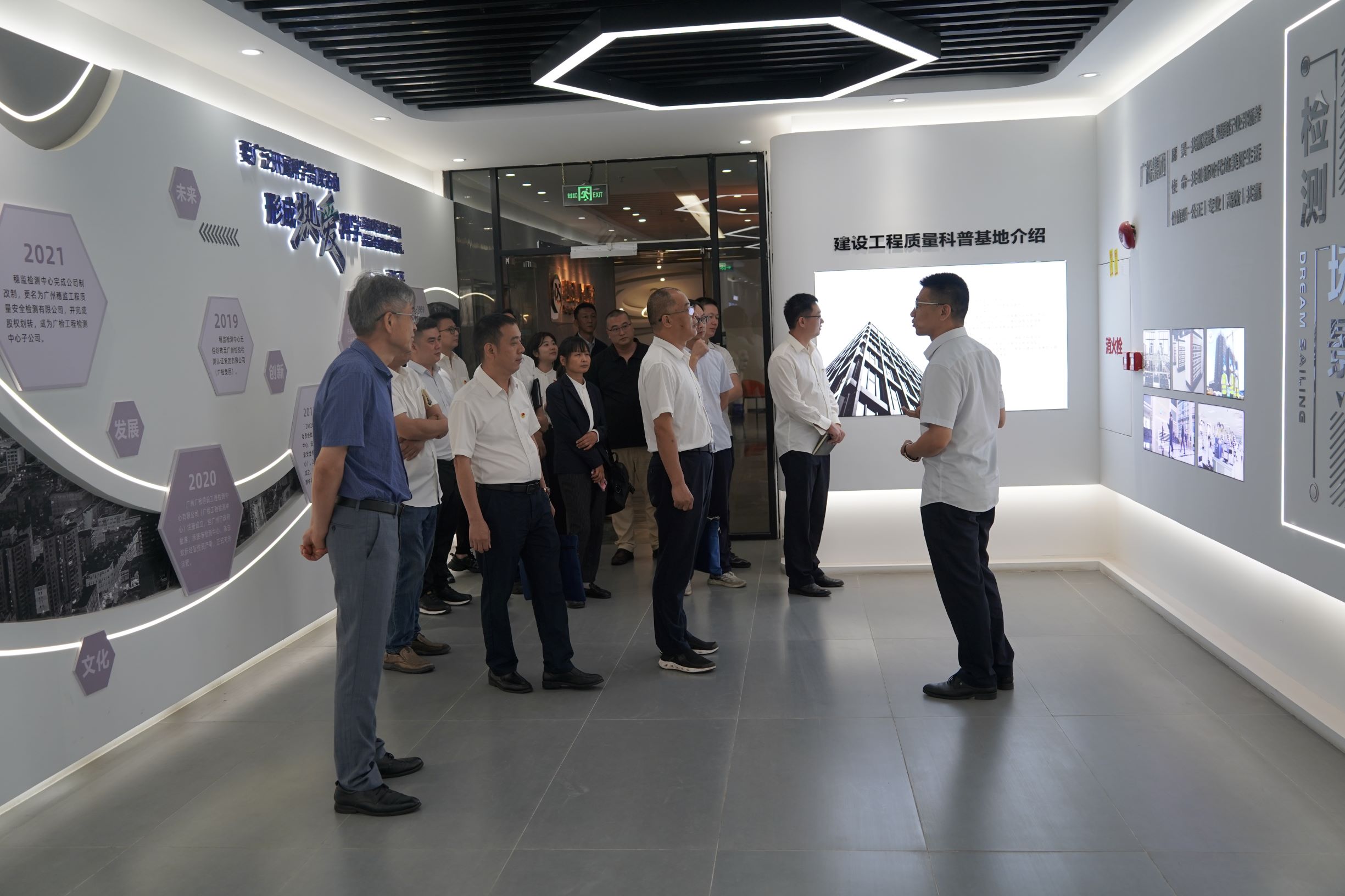 珠海交通工程技术有限公司一行实地参观了广检工程检测中心建设工程质量科普基地和智能化实验室。广检工程检测中心副总经理陈伟现场讲解了现代检测技术在工程质量管控中的创新应用,重点展示了实验室建设成效、智能化检测设备和科研成果转化情况。参观过程中,双方就检测技术发展趋势和实际工程应用进行了深入交流,现场互动氛围热烈。
