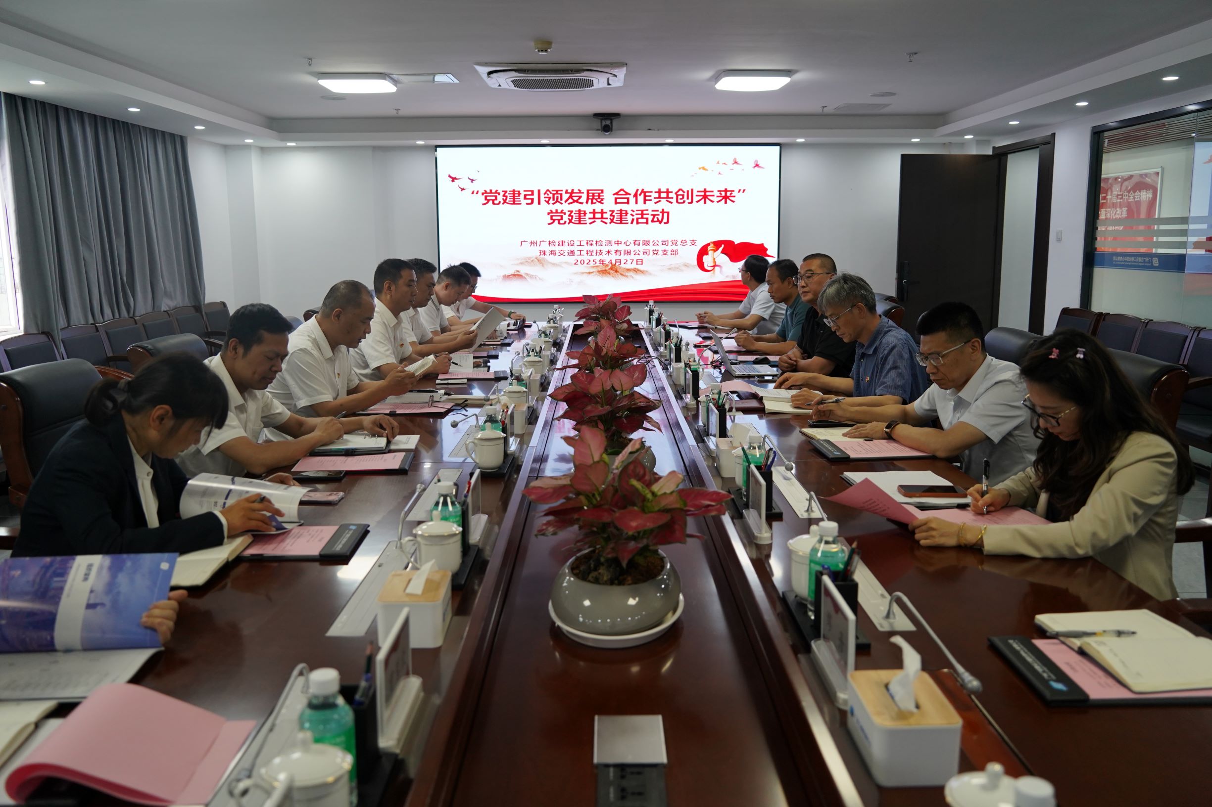 为深化党建引领,促进业务合作,4月27日,广检工程检测中心第二党支部与珠海交通工程技术有限公司党支部联合开展党建共建活动。双方围绕“党建引领发展 合作共创未来”主题,通过参观交流、学习研讨等形式,深化党建与业务融合,共促高质量发展。珠海交通工程技术有限公司党支部书记、董事长王强,广检工程检测中心党总支书记、总经理毛吉化等双方领导出席活动。活动由毛吉化主持。