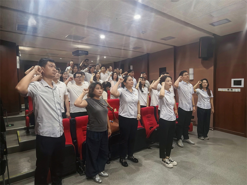 “我志愿加入中国共产党,拥护党的纲领,遵守党的章程......”在广质党总支书记姚晓庆的领誓下,全体党员面向鲜红的党旗举起右拳,庄严宣誓。铿锵有力的誓言既是对革命传统的接续传承,也是对廉洁从业的郑重承诺。
