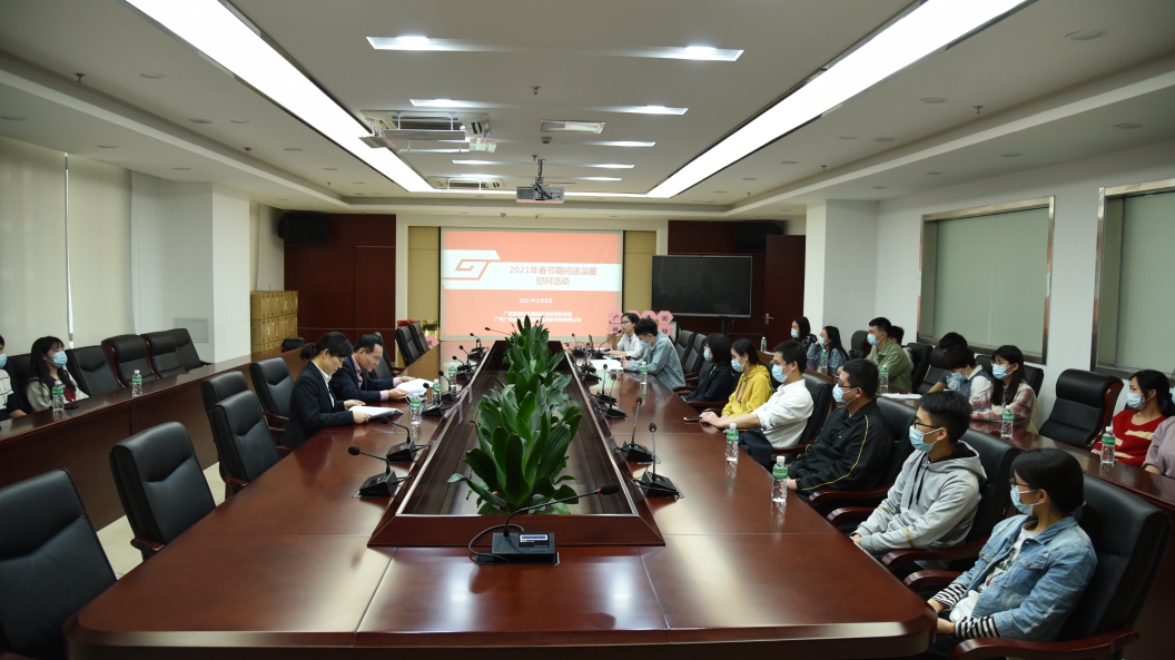 为积极响应就地过年号召,配合广州市疫情防控工作大局,关心关爱就地过年职工群众,新春佳节来临之际,广检集团开展2021年春节期间送温暖慰问活动,向企业12名困难职工、281名就地过年单身青年职工送去党组织和工会组织的关怀和温暖,并向他们致以节日的问候和新春的祝福。集团困难职工代表、就地过年的单身青年职工代表参加了活动。