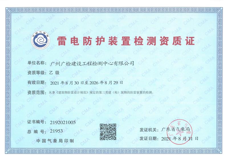 广建公司雷电防护装置检测资质证书
