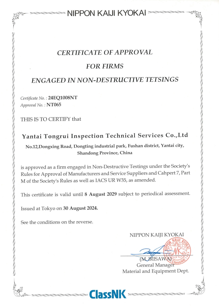 烟台通瑞公司日本船级社(NK)证书