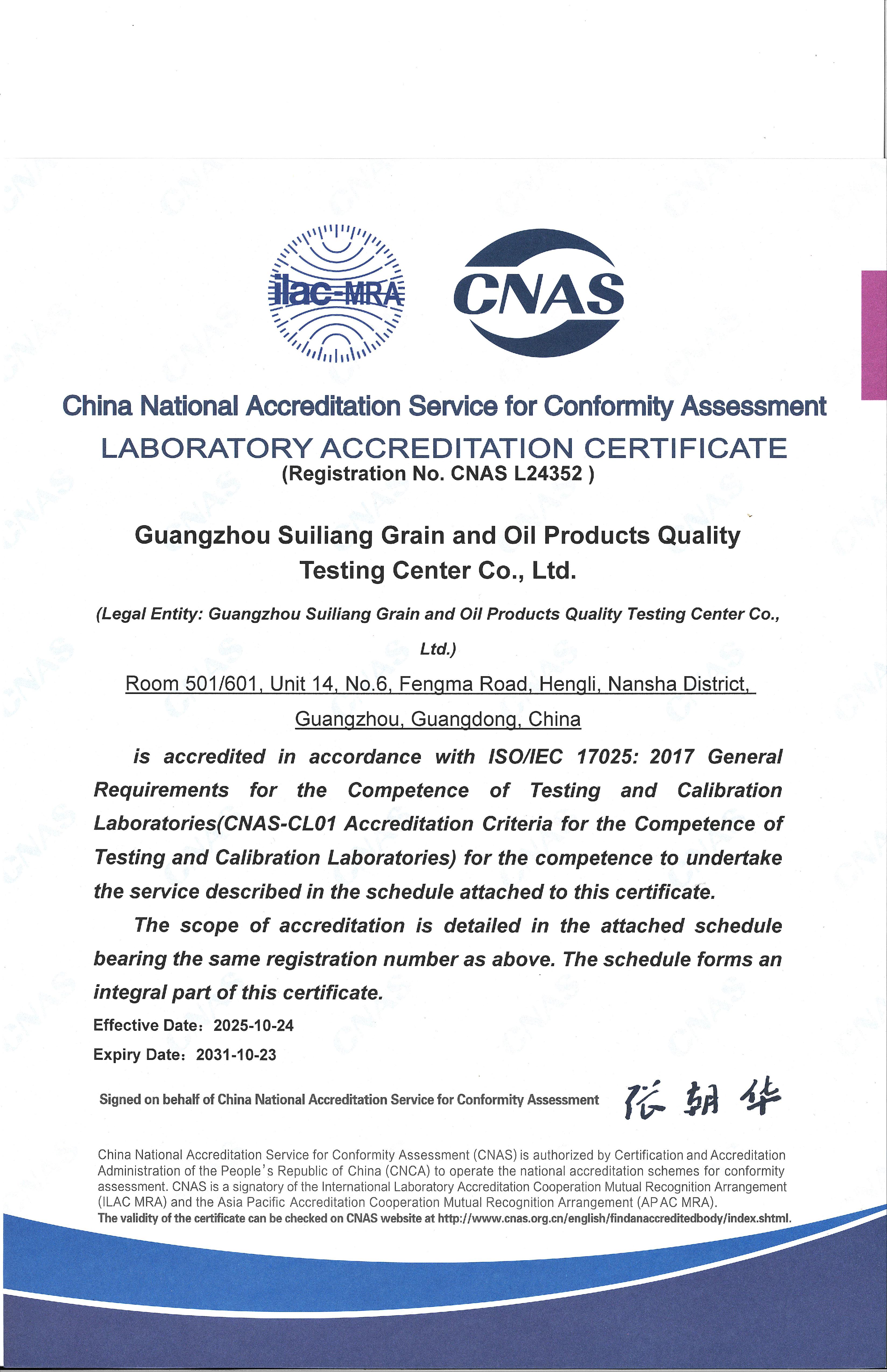 穗粮公司CNAS证书(英文)
