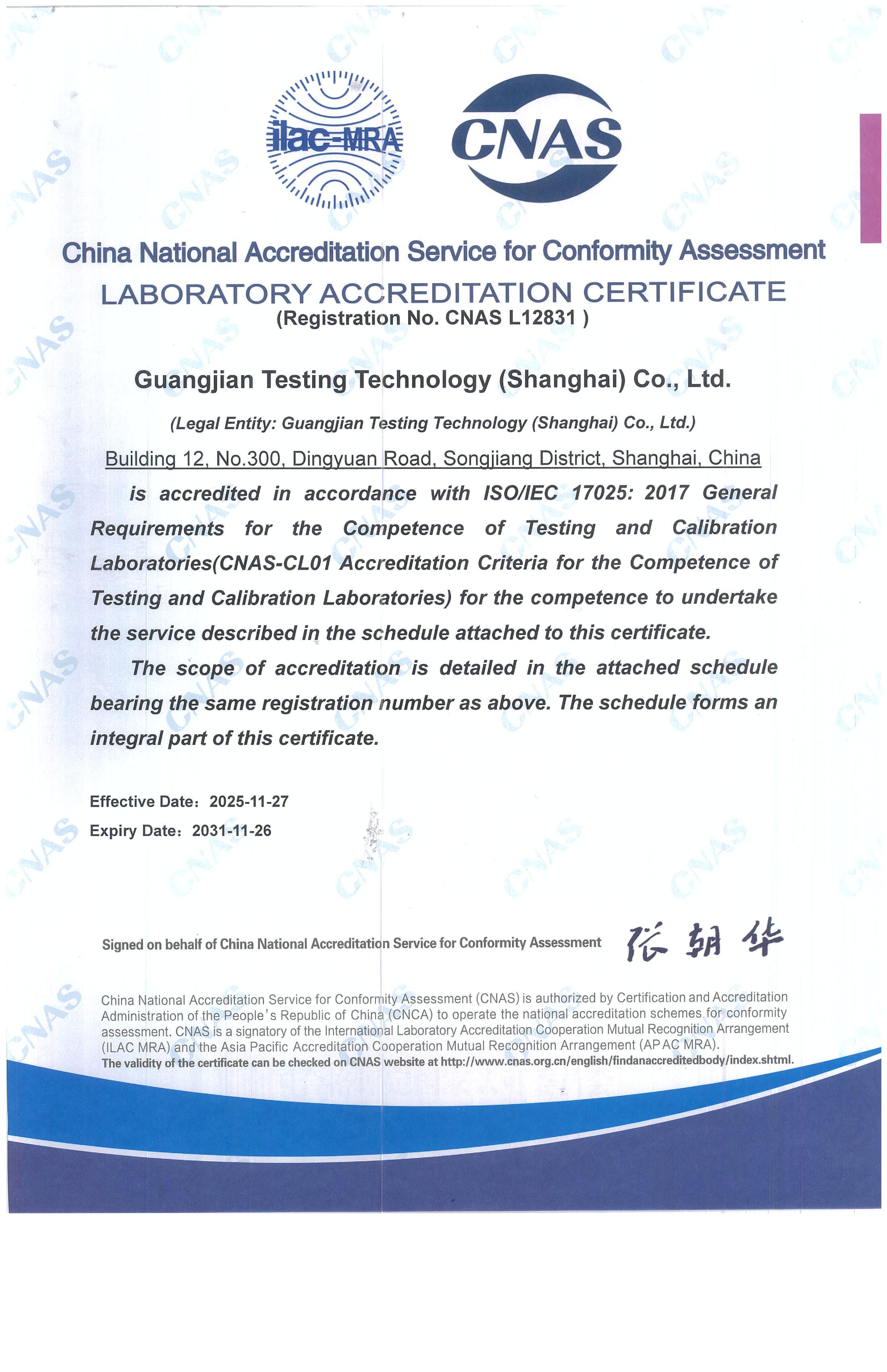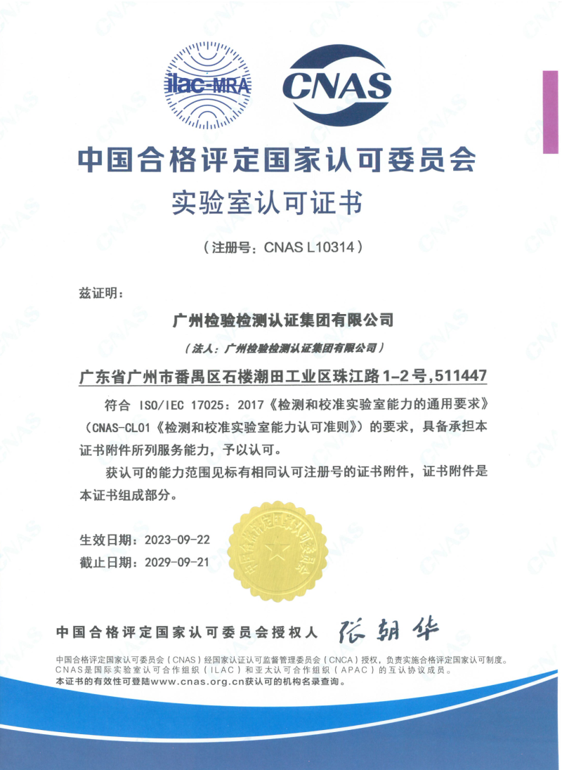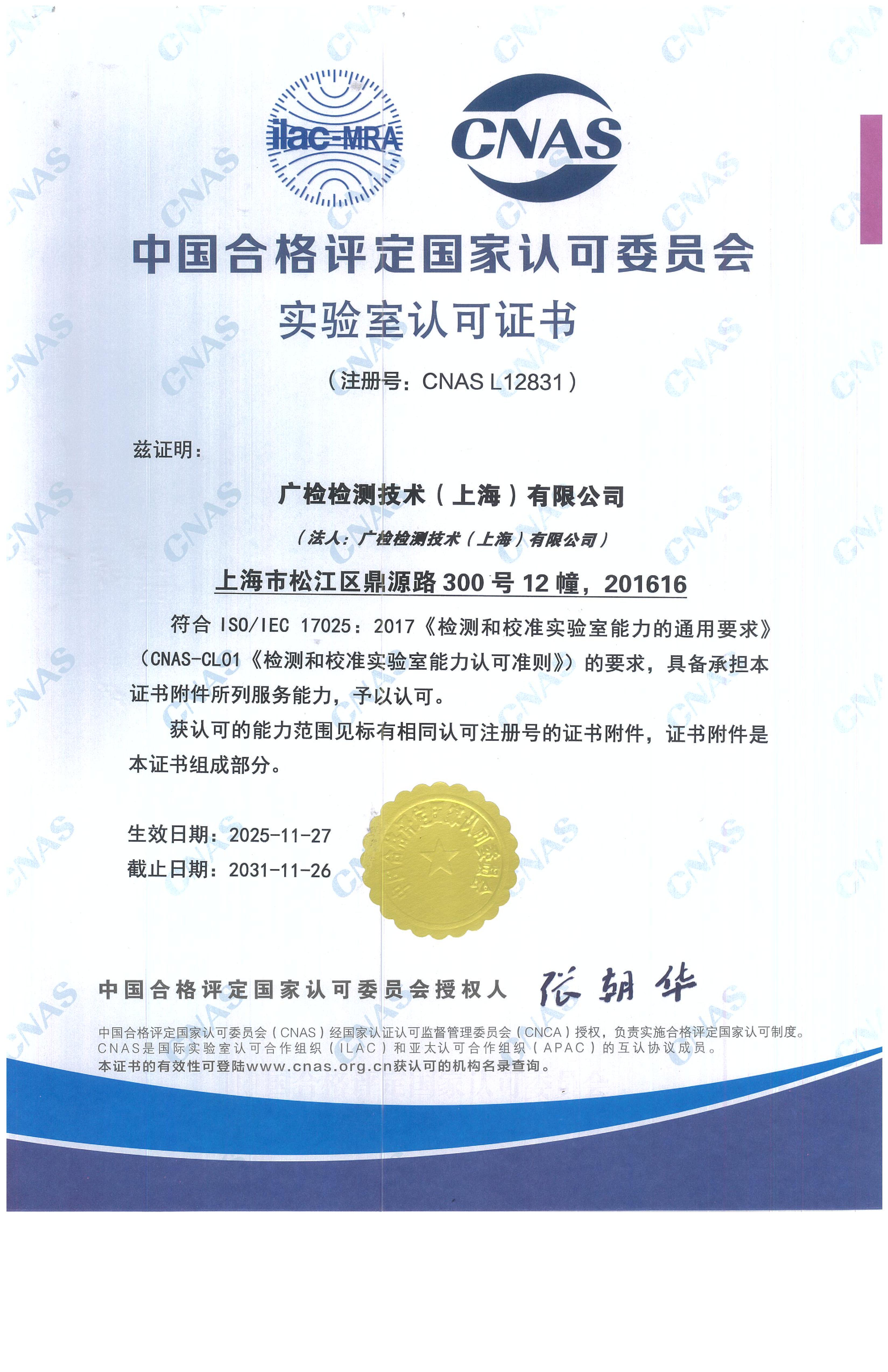 广建公司实验室认可CNAS证书
