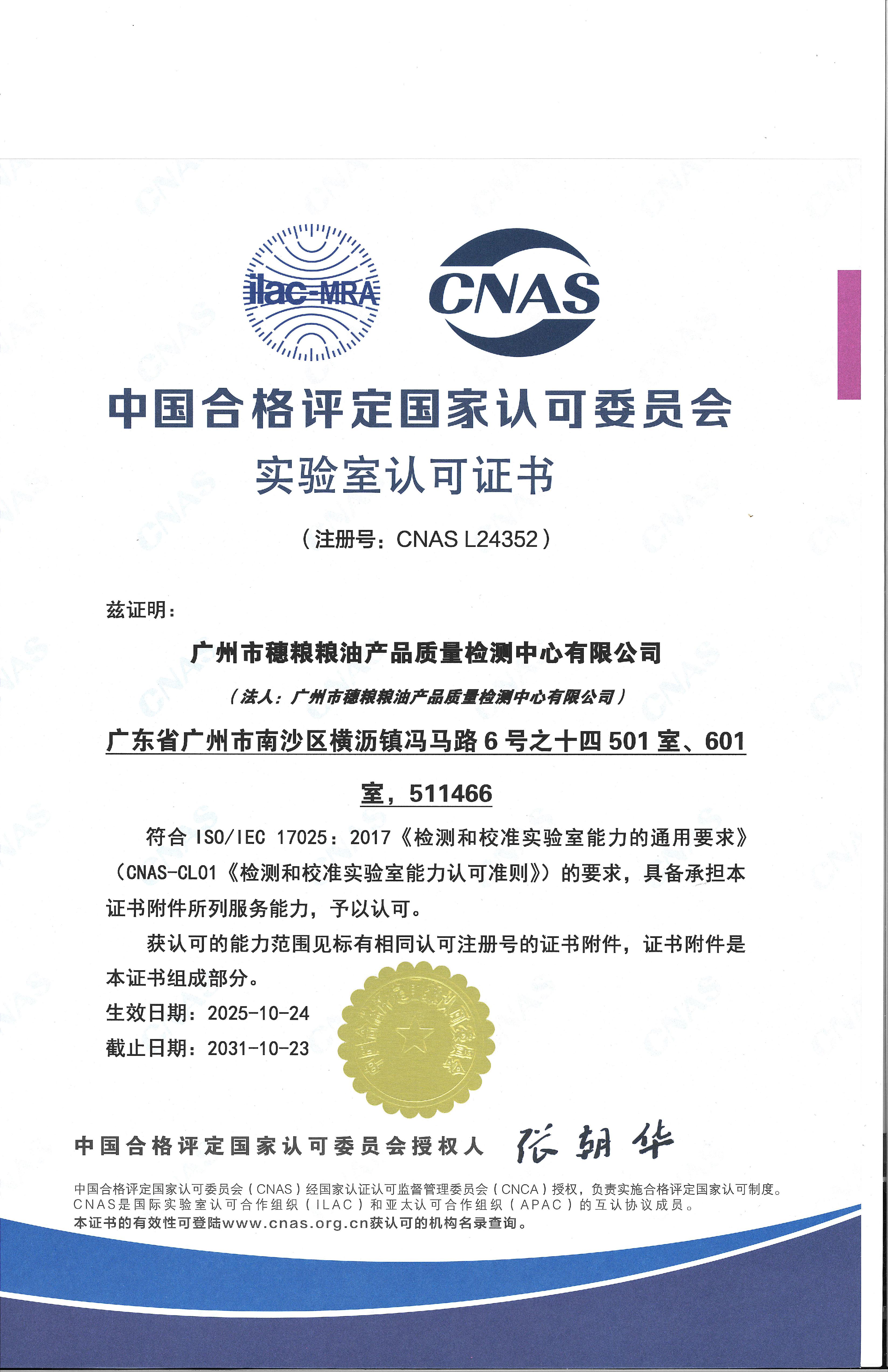穗粮公司CNAS证书(中文)