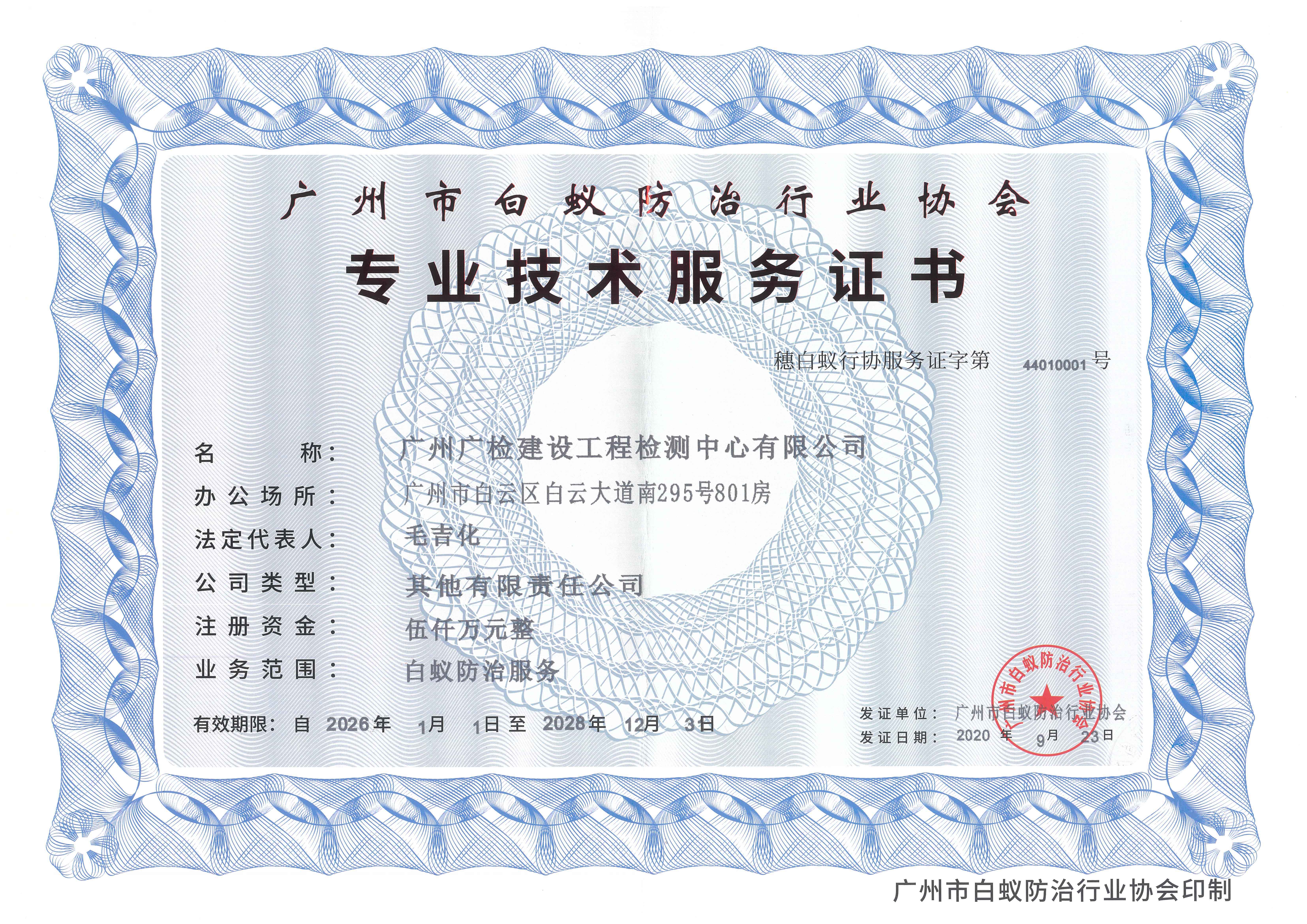 广建公司白蚁防治资质证书