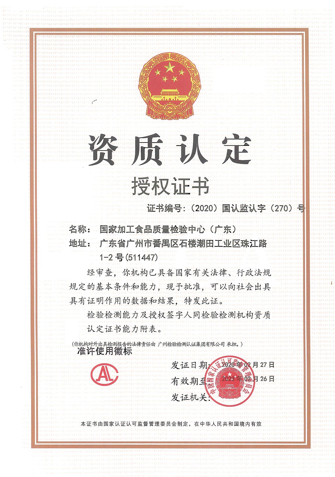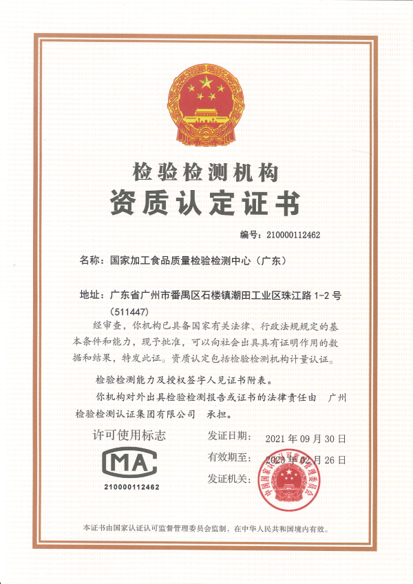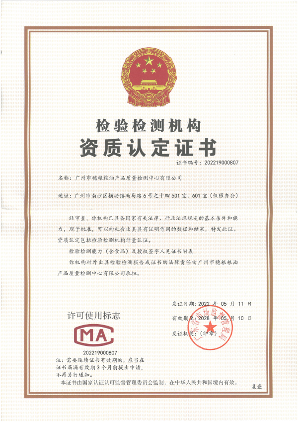 穗粮公司资质认定CMA证书