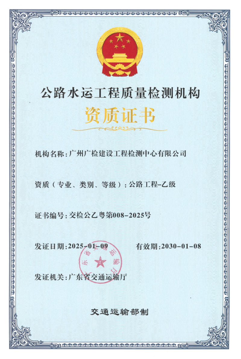 广建公司建设工程质量检测资质证书