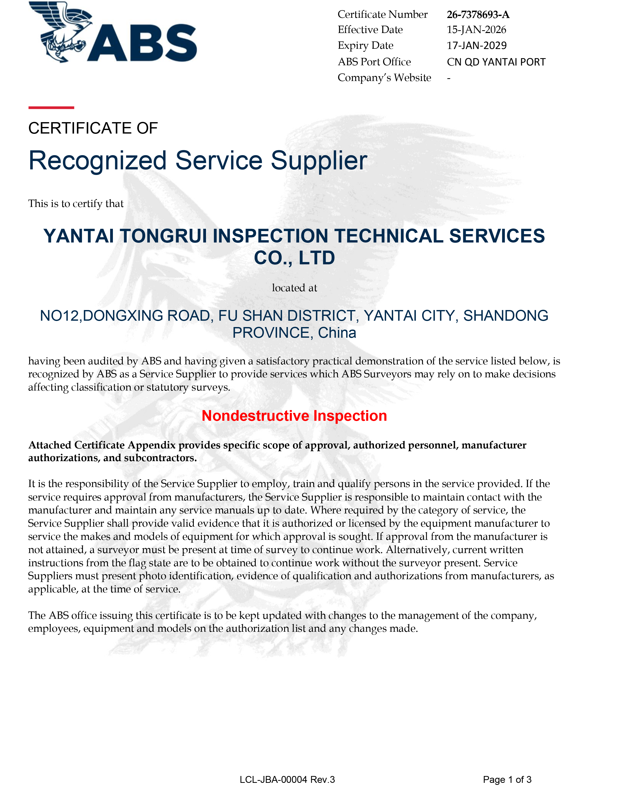 烟台通瑞公司ABS证书