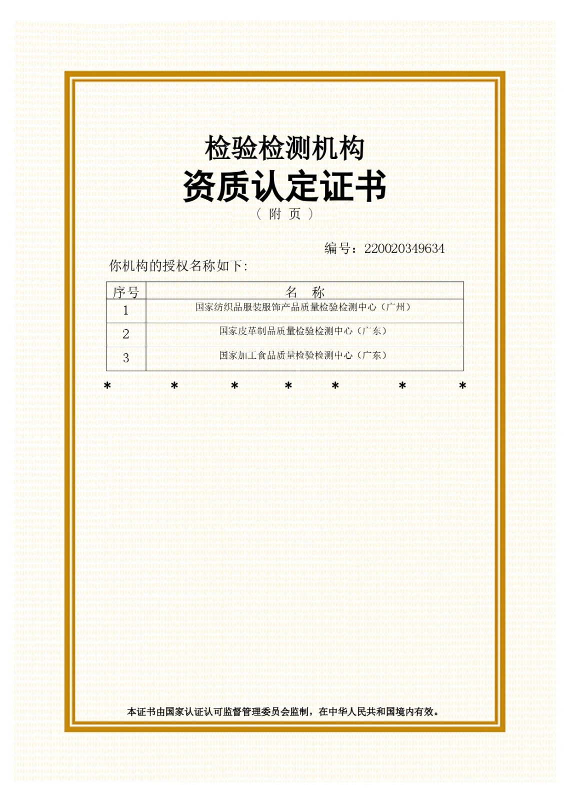认证机构批准书