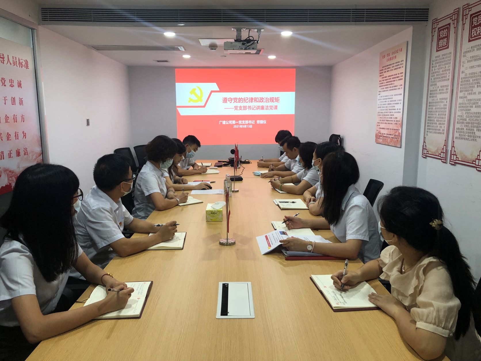 为进一步加强党支部的纪律作风建设,增强党员廉洁意识纪律意识,筑牢拒腐防变的思想防线。9月13日下午,广建第一党支部围绕“学党史悟思想,守纪律铸忠魂”主题,开展党支部书记讲廉洁专题党课暨观看廉政教育片活动。