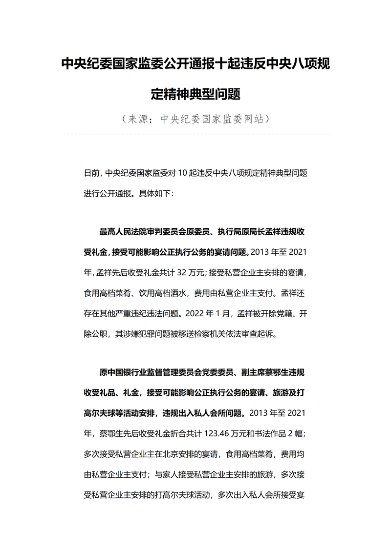 中央纪委国家监委公开通报十起违反中央八项规定精神......
