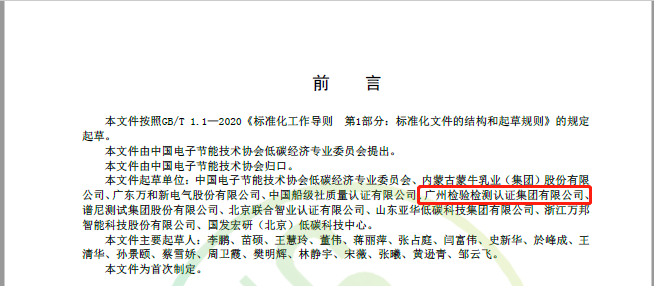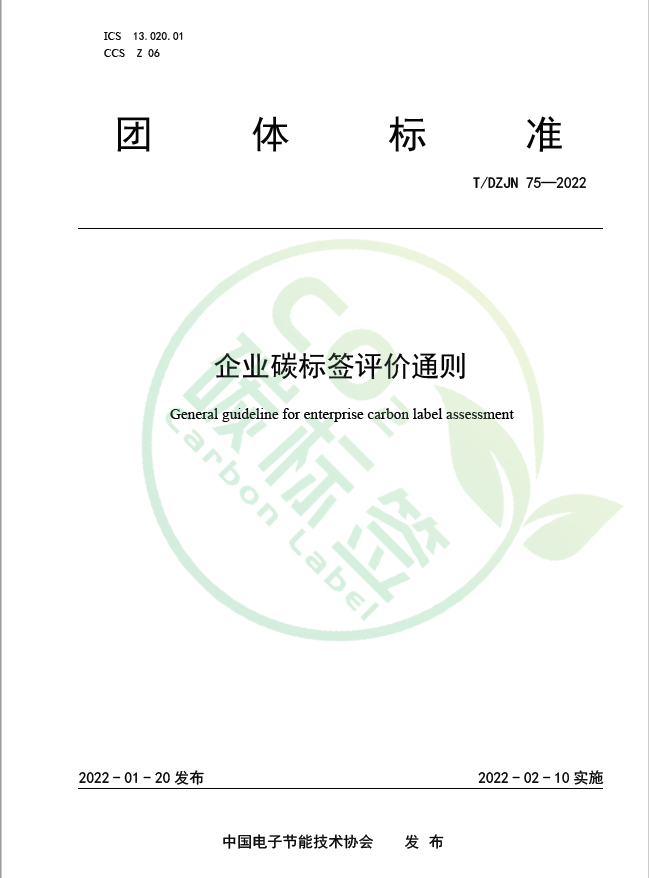 2022年1月20日,广州检验检测认证集团有限公司参与编制的《企业碳标签评价通则》(T/DZJN 75—2022)正式发布。该标准是国内第一个以企业性质为主导的碳标签评价团体标准,对企业碳足迹、碳排放、产品工艺、技术设备、人才制度及低碳技术应用与创新等方面有着清晰明确的评估原则。该标准的制定,是企业实施节能减排和实现碳中和的重要依据,对我国企业的低碳建设具有指导意义。