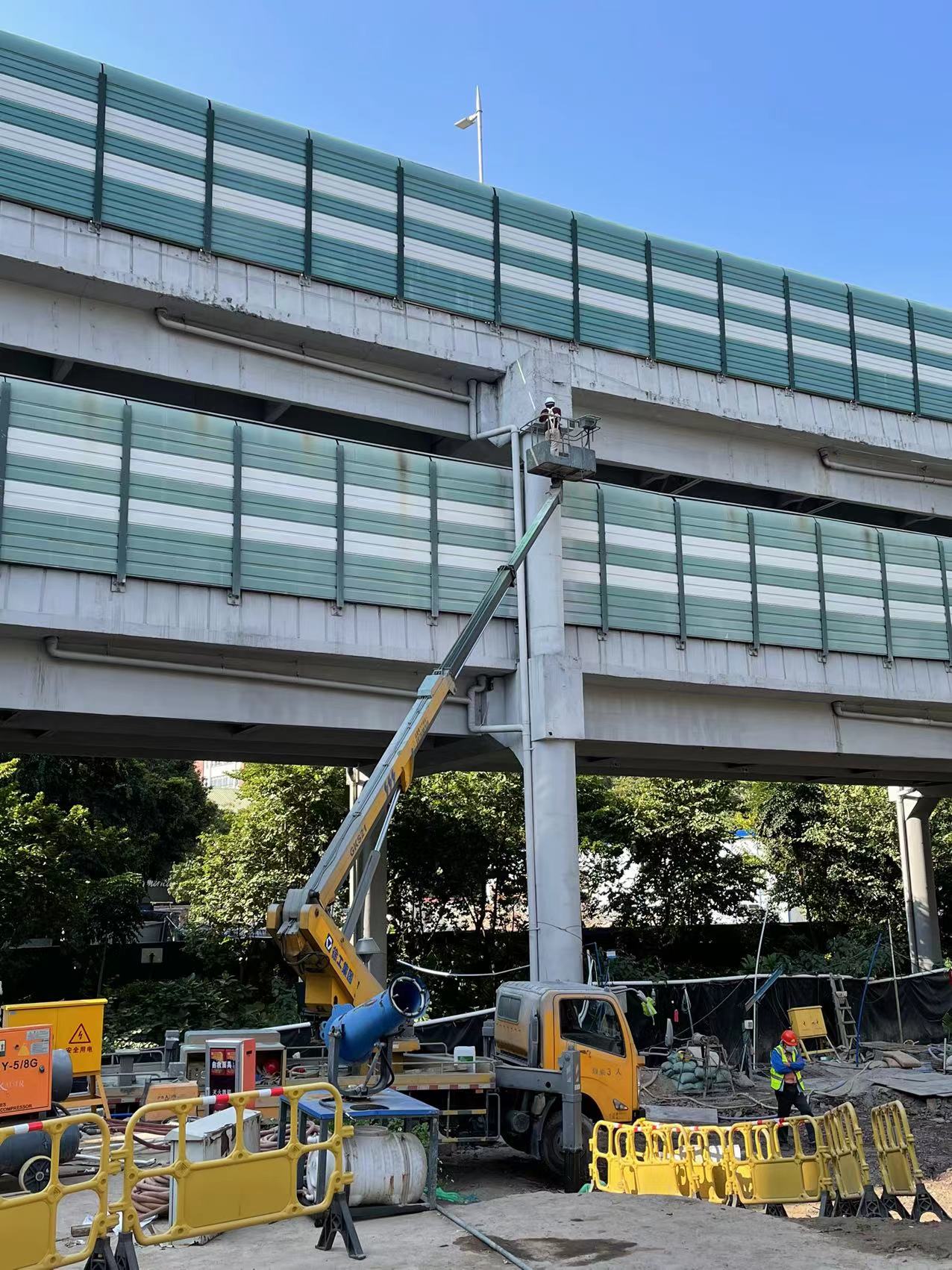 荣华南片区出入通道新建工程施工采用人工挖孔桩、承台基坑钢板桩支护等工艺,人工挖孔桩最深达25米,承台基坑边距离东濠涌高架桥墩柱最近距离仅2米,项目的桩基础施工、承台基坑施工会对东濠涌高架的下部构造成一定影响。