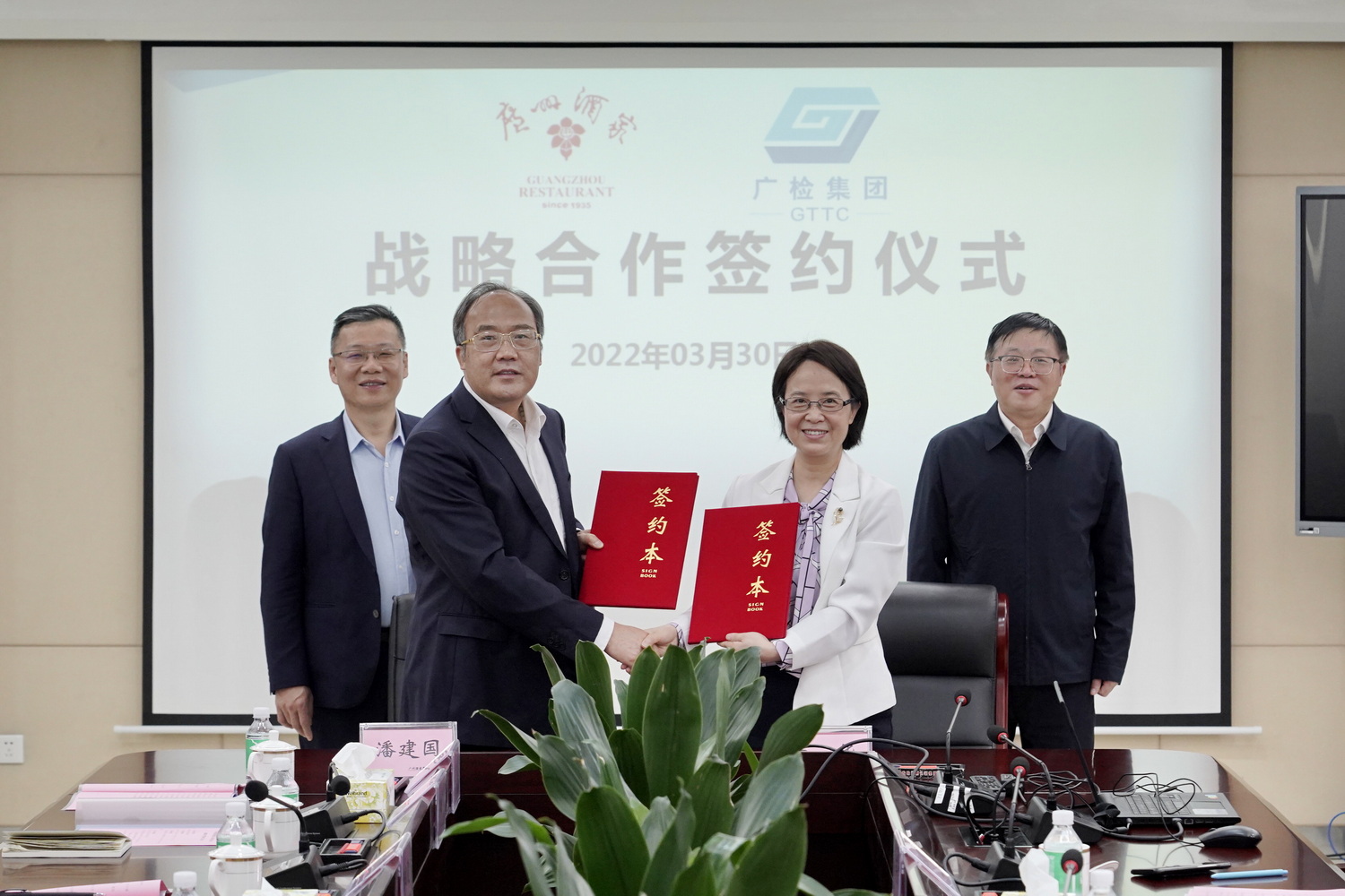2022年3月30日上午,广州检验检测认证集团有限公司(以下简称广检集团)与广州酒家集团股份有限公司(以下简称广州酒家集团)战略合作协议签约仪式在广检集团总部举行。广州酒家集团党委副书记、总经理、副董事长赵利平,党委委员、副总经理潘建国,广检集团党委副书记、总经理、副董事长黄勇,党委委员、副总经理党华等领导及双方所属机构代表出席签约仪式。会上,双方就加强合作交流、共享优势资源等方面达成共识,并签订了《战略合作协议》。