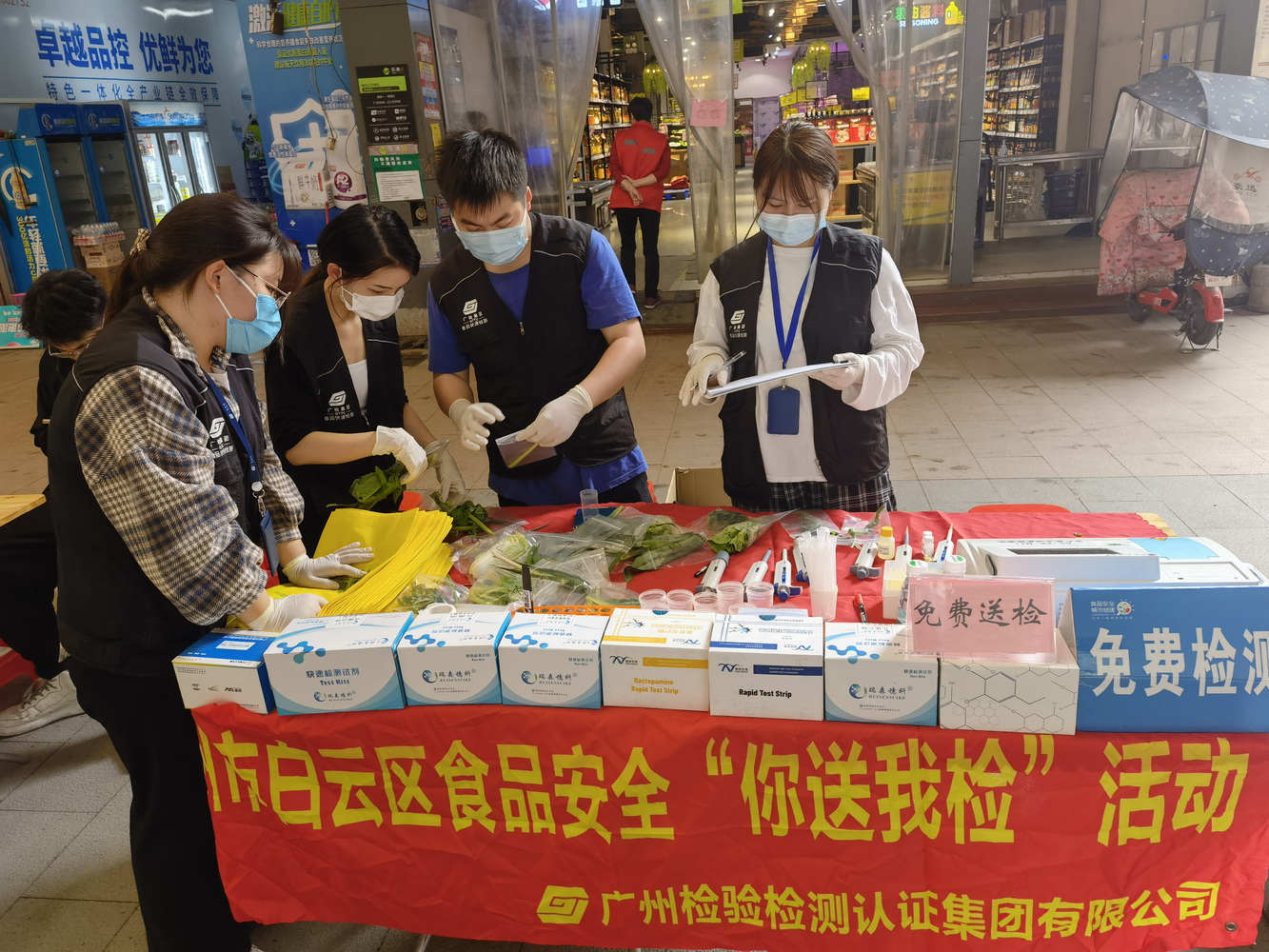 为有力保障广大市民食品消费安全,解答消费者关于食品安全的疑问,3月31日上午,广州市市场监管局联合白云区市场监管局举办的2022年度首场食品安全“你送我检+突击抽检”活动在白云区和乐农贸市场拉开帷幕,由广检集团承接相关任务。