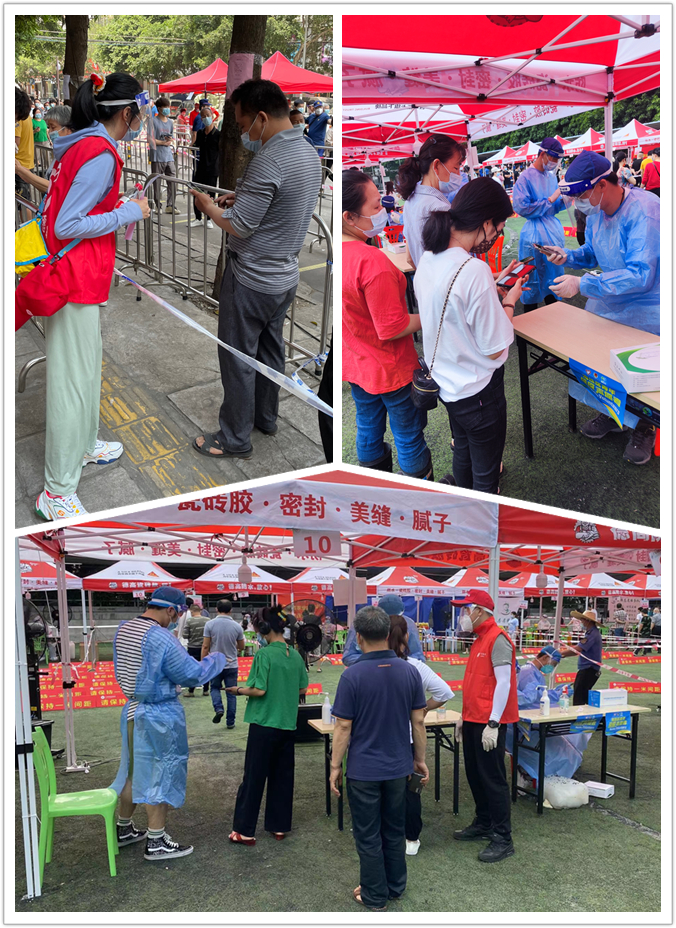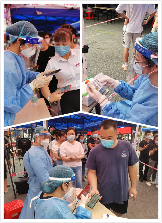 “疫情一天不除,我们一天不退”。广检集团广质党总支党员周朗君望向飘扬在全员核酸检测现场的党旗坚毅说道。“我提前熟悉好现场核酸检测的流程,手中拿着穗康码、行程卡、核酸检测码,站在队伍的末尾给前来排队测核酸的居民不断讲解如何扫码截图,尽量减少队伍的等待时间。”5个小时持续不断的讲解引导,她此时已觉声音逐渐沙哑,“现场居民的一声‘辛苦了’使我倍感温暖和充满力量,能为广州抗疫工作贡献自己的一份力量,原来真的会感到自豪。”周朗君说。