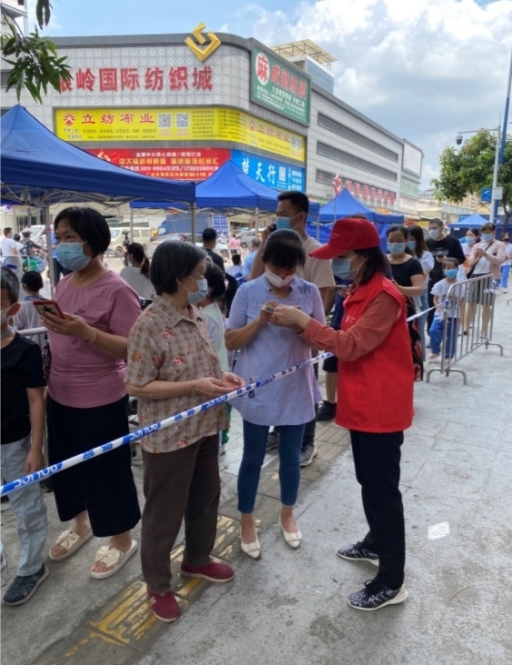 为助力番禺区疫情防控工作,4月10日,广检工程检测中心林棵、吕玉谷两位同志参与集团组建的志愿服务突击队,紧急驰援番禺区石楼镇倚莲半岛花园,开展全员核酸检测工作。他们在现场引导群众按序检测核酸,协助动员社区居民信息登记,全力以赴做好组织交付的各项任务。