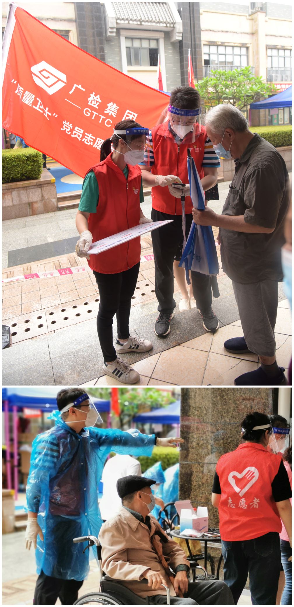 “战‘疫’伉俪共赴支援一线”。广检集团广纺党委党员马楠、入党积极分子王涛是一对80后夫妻,广州本轮疫情发生后,他们纷纷主动投身参加疫情防控一线支援工作。“我报名了支援番禺区全员核酸检测点的任务。”马楠像往常一样参与支援任务前向王涛说道。“我看到支援任务消息了,我也报名了这次支援的任务。”王涛向马楠会心一笑回应道。“雨天地面湿滑,请留意脚下安全,提前打开核酸码,保持一米距离。”马楠、王涛在支援现场向正在排队的核酸检测队伍喊道。在遇见两位同行现场群众,其中一位手机损坏无法开机而着急向马楠求助,马楠耐心安抚并用自己的手机帮助其录入身份信息并截图传送,快速帮助其完成核酸检测,两位同行的群众连忙为她的热心帮助点赞!“外面下着雨,你在这站了近6小时了,要是有身体不适,你歇会,我替你站岗。”王涛向马楠关切说道。“没事,我可以坚持!有一种浪漫叫‘与你并肩作战’。”马楠笑着回应说。“她入党14年了,每次党组织有任务都积极报名冲在前面,特别是这三年疫情期间,有召必应。她是我一生的陪伴,更是我一生的榜样,我将努力按共产党员的标准严格要求自己,争取早日入党。”作为入党积极分子的王涛支援任务结束后坚毅说道。