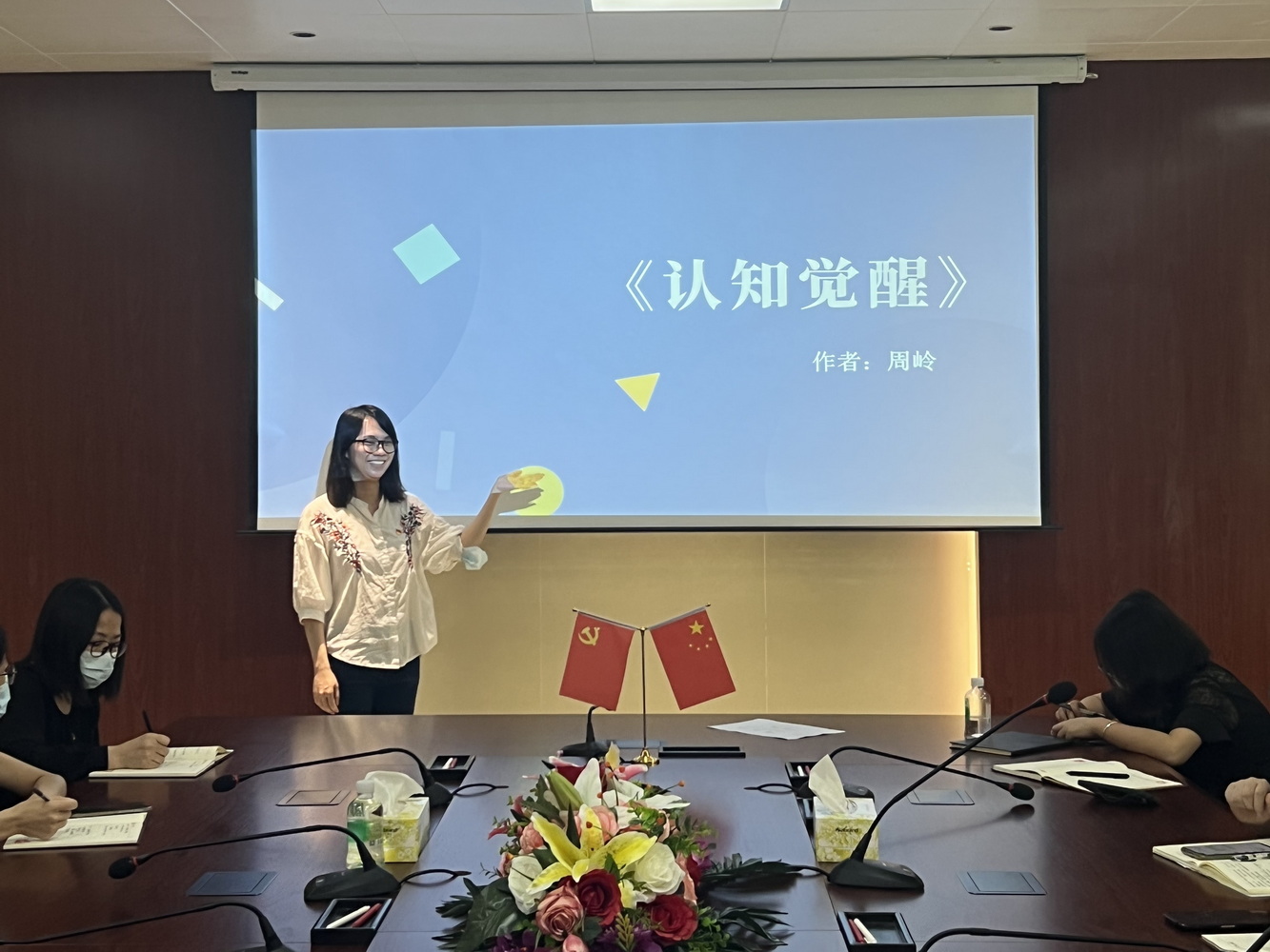 活动邀请梁倩同志为全体党员作书籍《认知觉醒》的阅读分享以及结合自身岗位畅谈读书收获和心得体会。书中提到:很多人总是希望先找到目标再行动,事实上,如果不行动,我们可能永远也找不到自己的人生目标;思考很重要,但光想不做,贻害无穷。当我们把技能学习路径和认知学习路径合在一起,就能清楚知道“知而不行”的原因。习近平总书记曾指出,学术、知识不能只是在嘴上,要联系实际,做到知行合一、格物致知、学以致用。